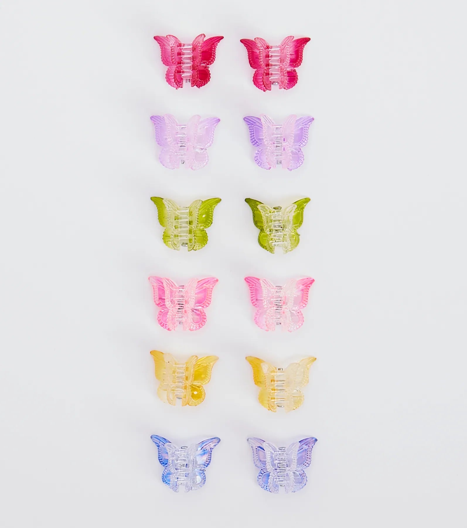 Throw it back and get the cutest ’90s babe look with this trendy butterfly hair clip pack. The set features six pairs of small butterfly clips in assorted multi-colored hues. Style with?.