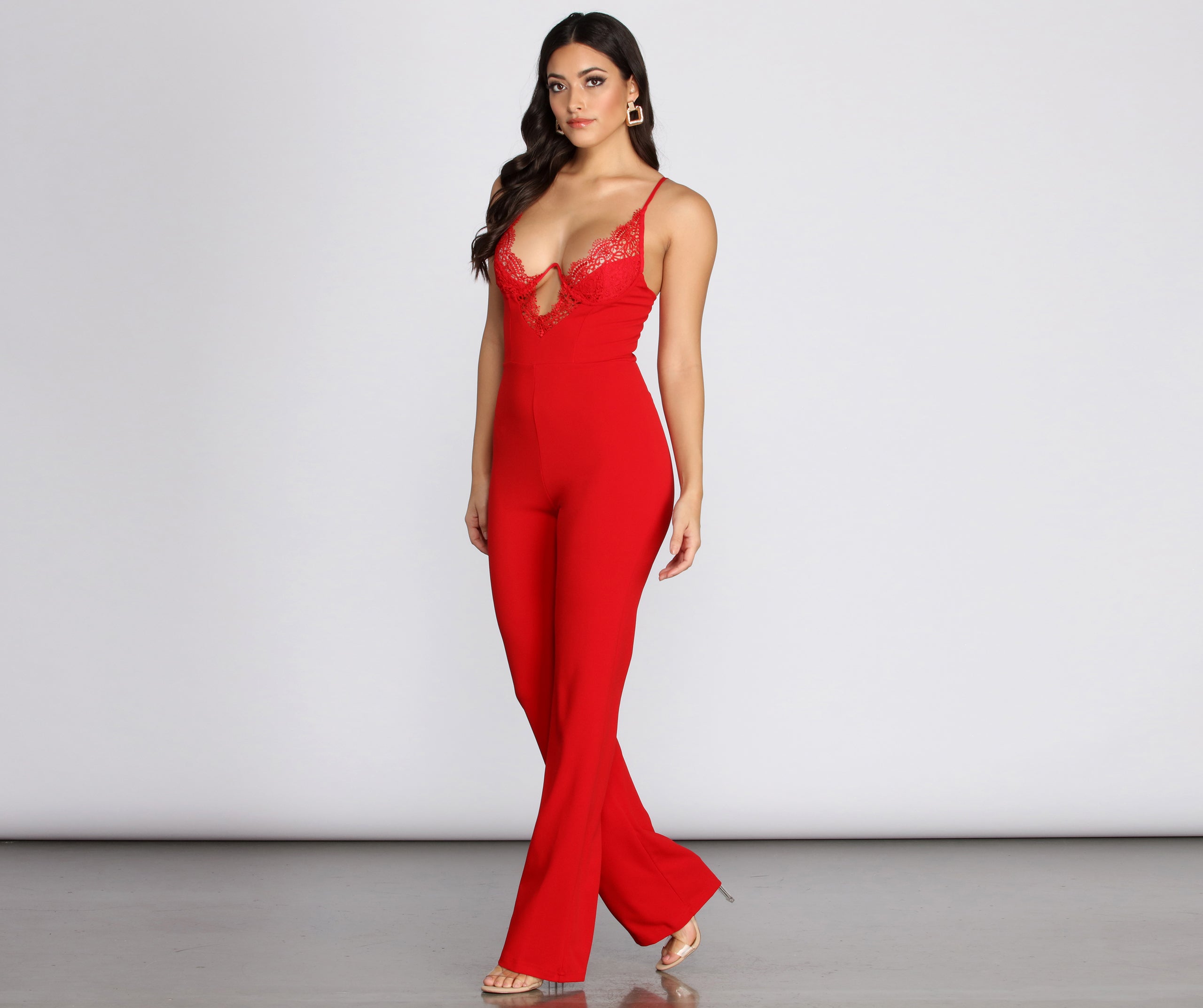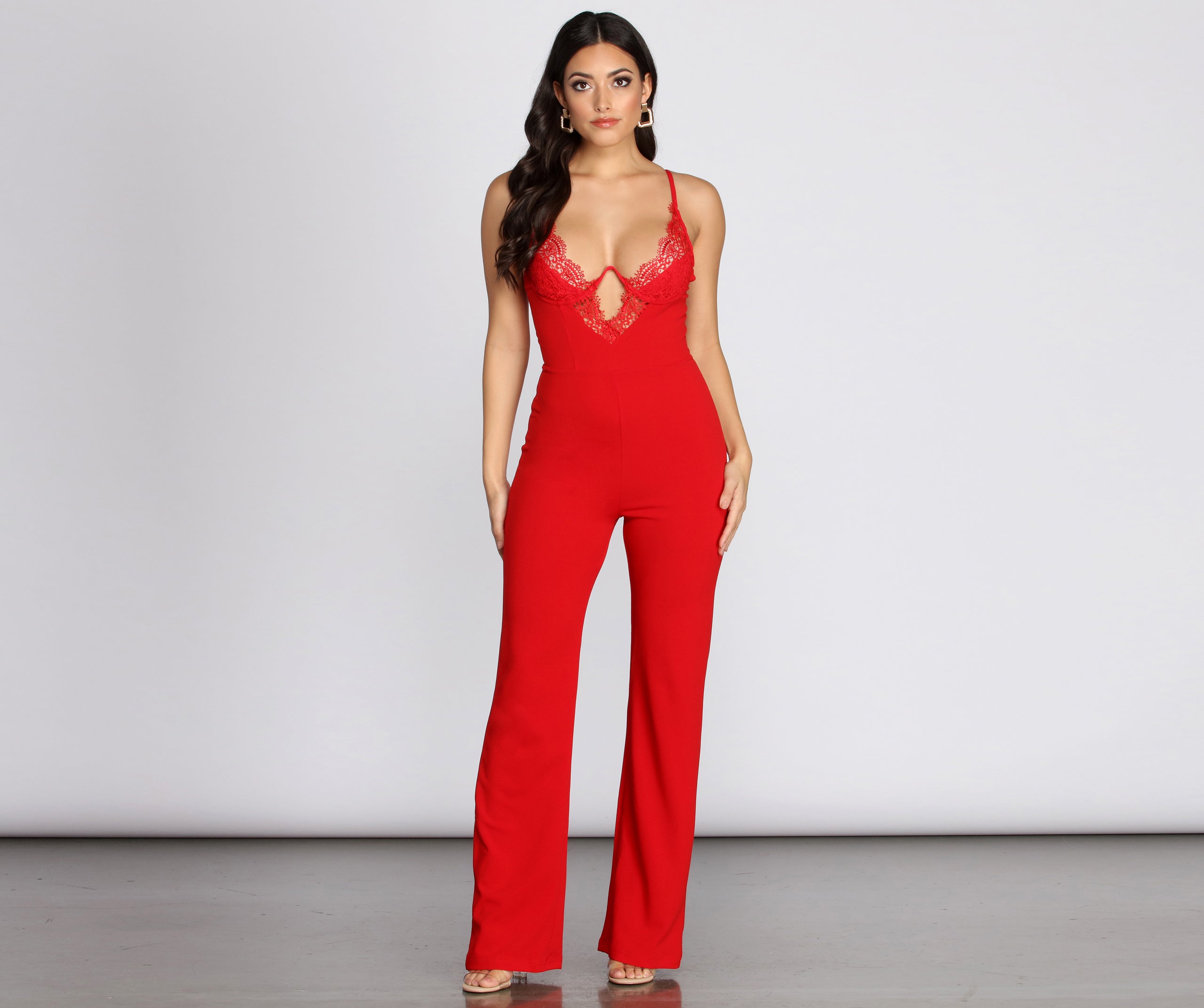 This jumpsuit’s little lace detail makes it so stylish and sultry!