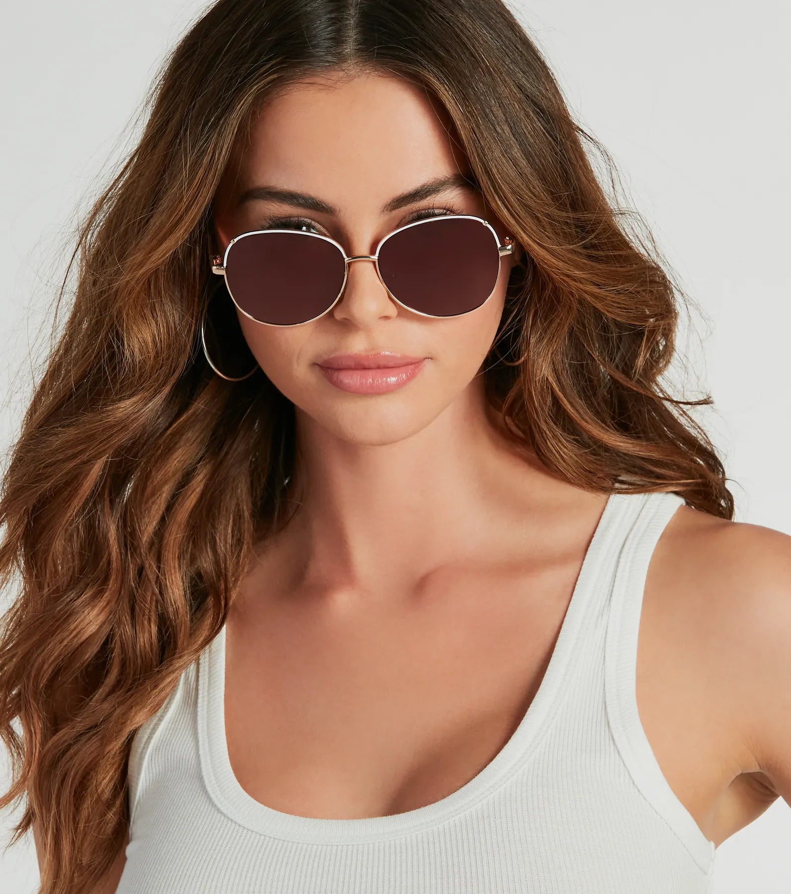 Take your look above average in these oval metal trim sunglasses perfect for driving and everyday styling! The sleek oval metal trim frame and tinted lenses provide 100% UV protection while the rubber nose supports and plastic arms ensure comfort and durability. Complete the look with a trendy .