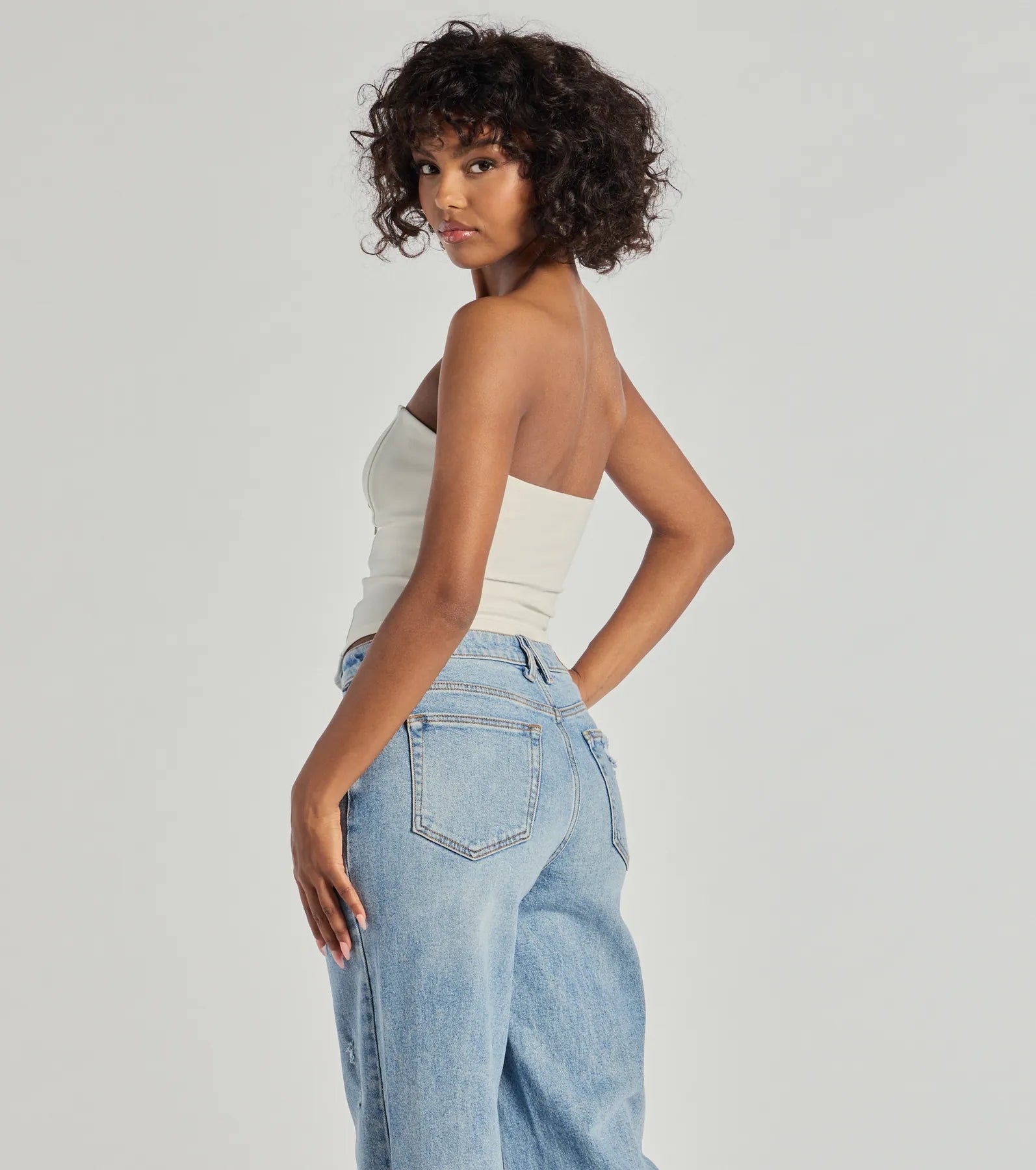 - Strapless straight neckline