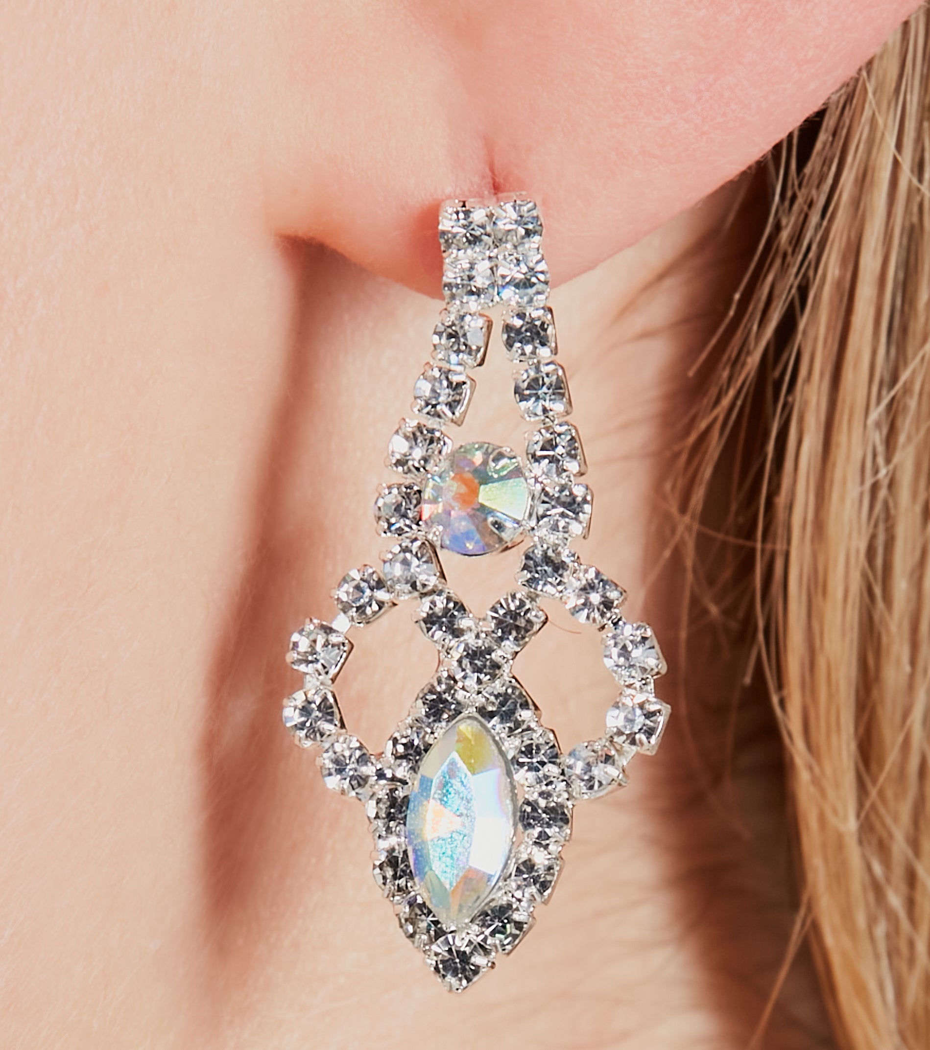 Make a statement with this exquisite rhinestone necklace and earring set. Intricately crafted with an air of luxury. this jewelry set is sure to be a conversation starter with its mini rhinestone trim and statement design. it’s sure to revel in everlasting timeless elegance. Complete the look with for a black tie party!