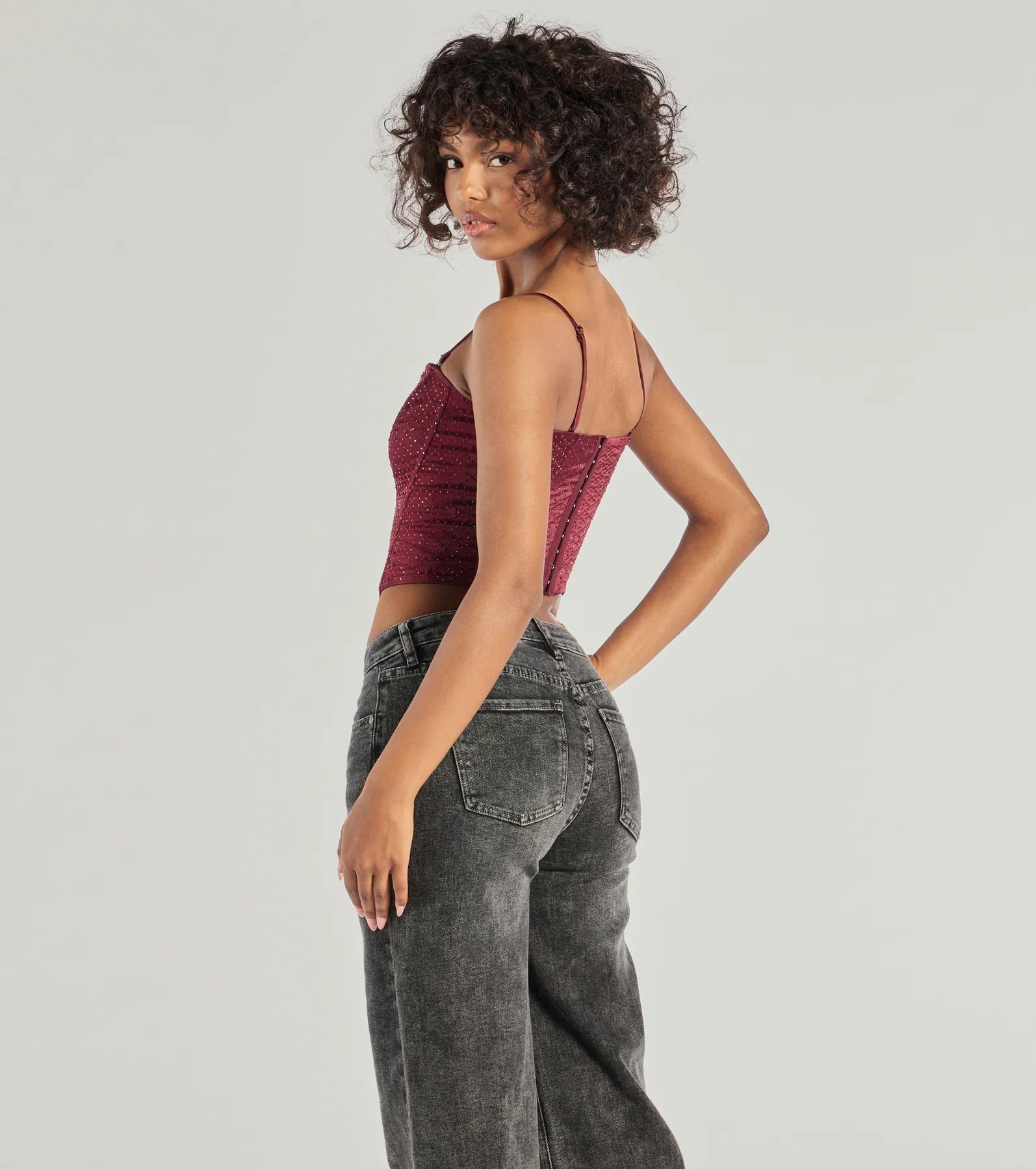 Be the first to review “All That Glam Rhinestone Satin Cropped Corset”