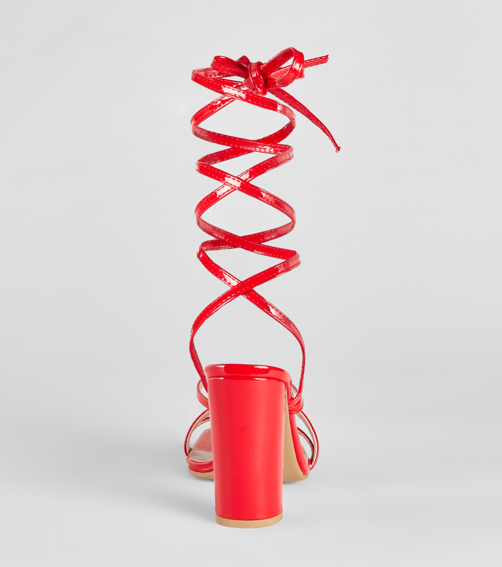 These bold block heels have a timeless silhouette that will have you looking chic and sophisticated with every step. Crafted from patent leather material. the square toe block heel features lace-up and strappy elements to elevate every outfit. Complete the look with an for an art gallery opening or cocktail mixer!