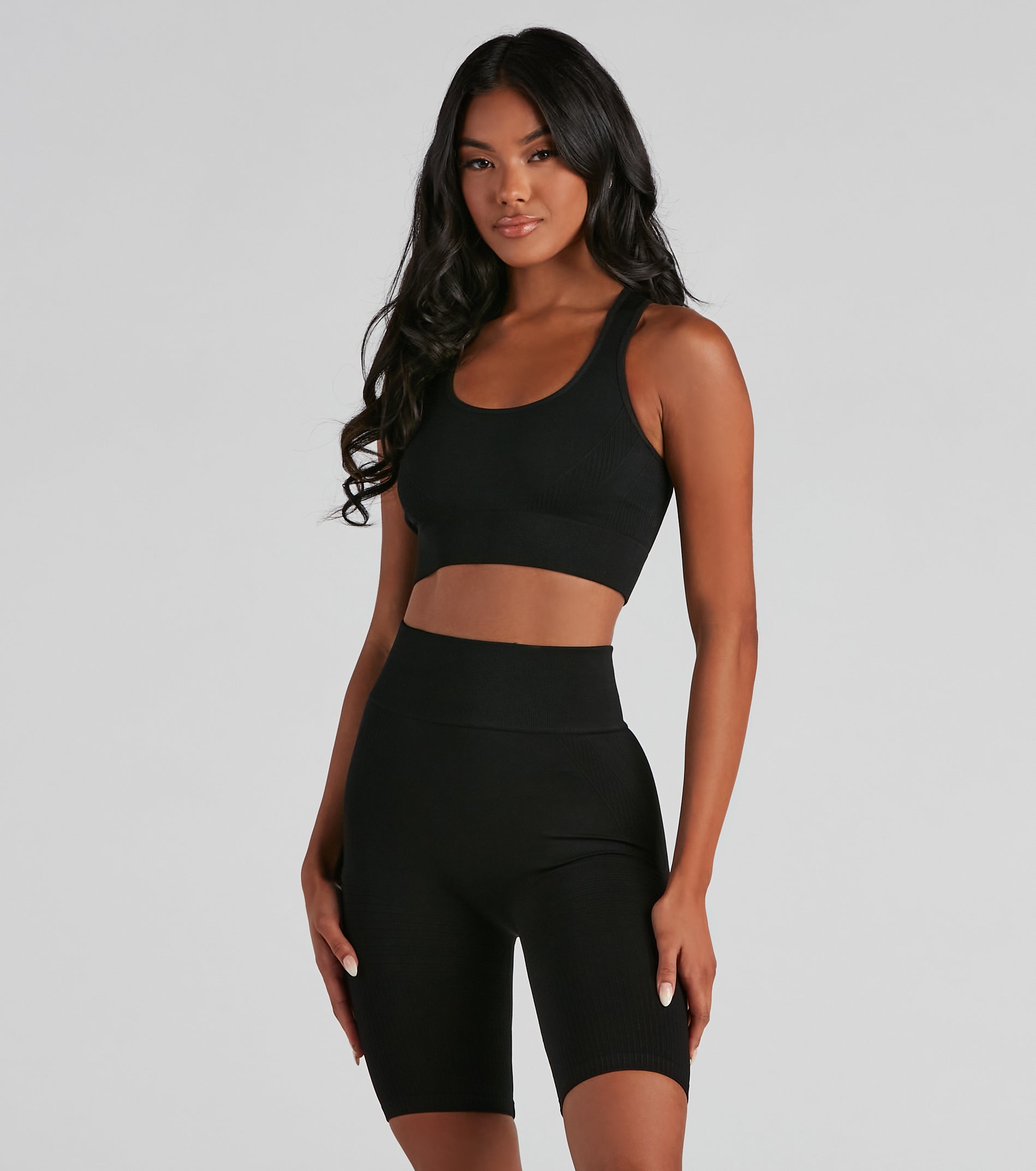 All you need is this seamless?biker short for the perfect lounge sesh! It features a supportive high-rise waistband. side contouring panels. and a biker-length hem composed of a buttery soft knit fabric. Complete the look in the matching?bralette with your favorite slippers.?