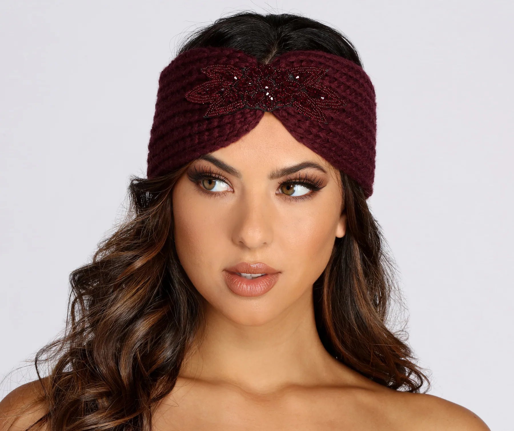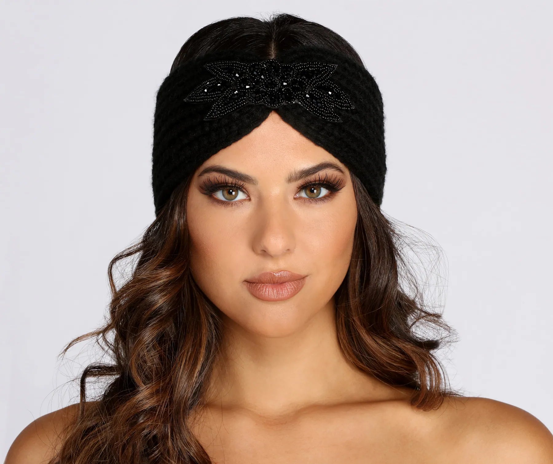 Wrap your tresses with this sparkling head wrap! It features a crochet knit material and a floral petal design with beaded embellishments for dazzling shine!