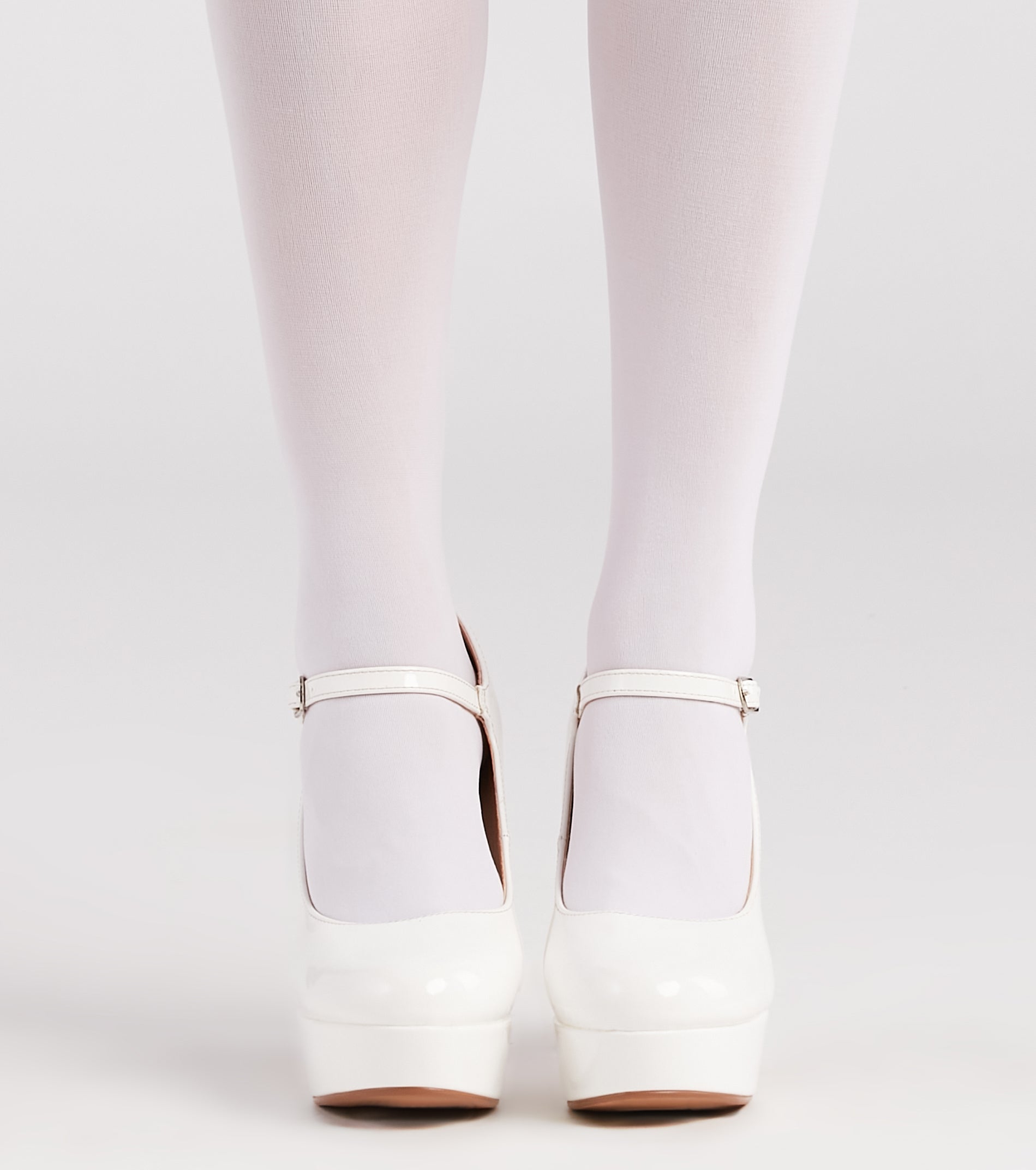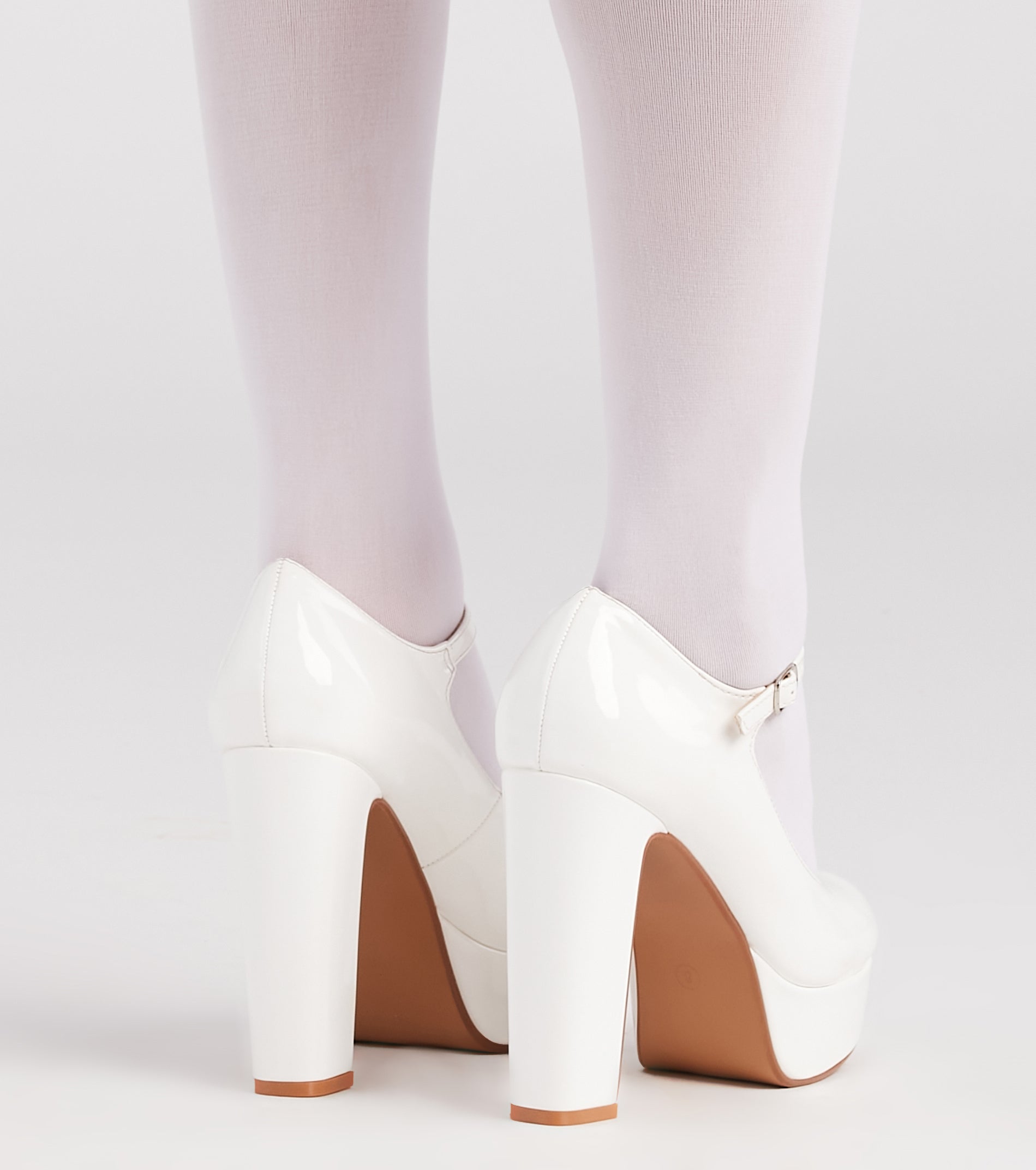 Keep your look bold and polished in these patent leather pumps! The heels feature a closed round toe. sides. and ankle. a platform sole. a chunky block heel. and an adjustable ankle strap with buckle closure. Complete your outfit with a !
