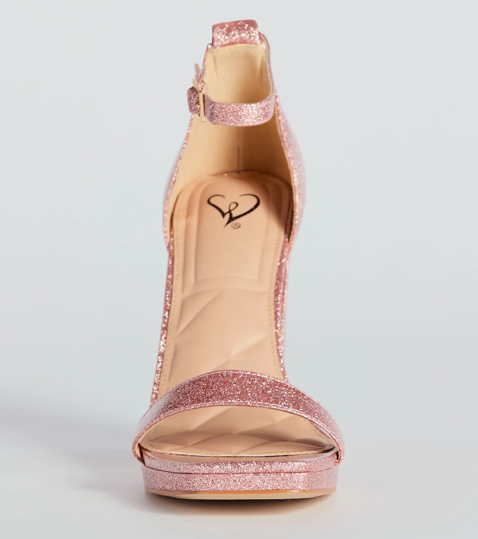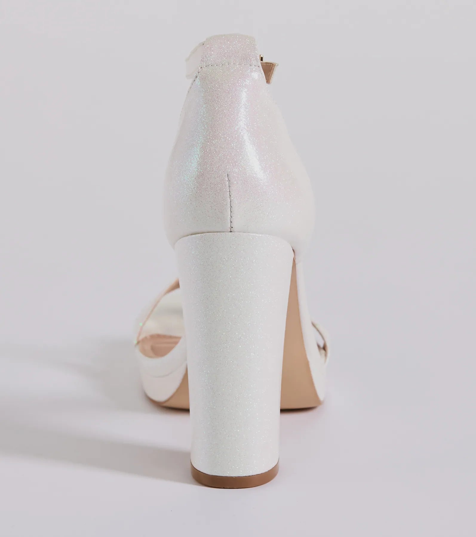 Capture sparkle in these block heels perfect for a night out or a dressy event! Featuring a sleek square toe. a platform sole that elevates the style. a block heel. a luxe fit cushioned insole for comfort. and a closed ankle with an adjustable strap with buckle closure. Complete the look with .