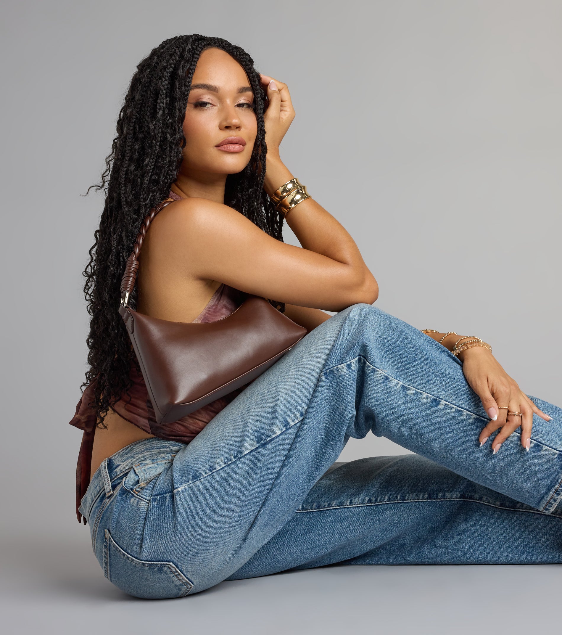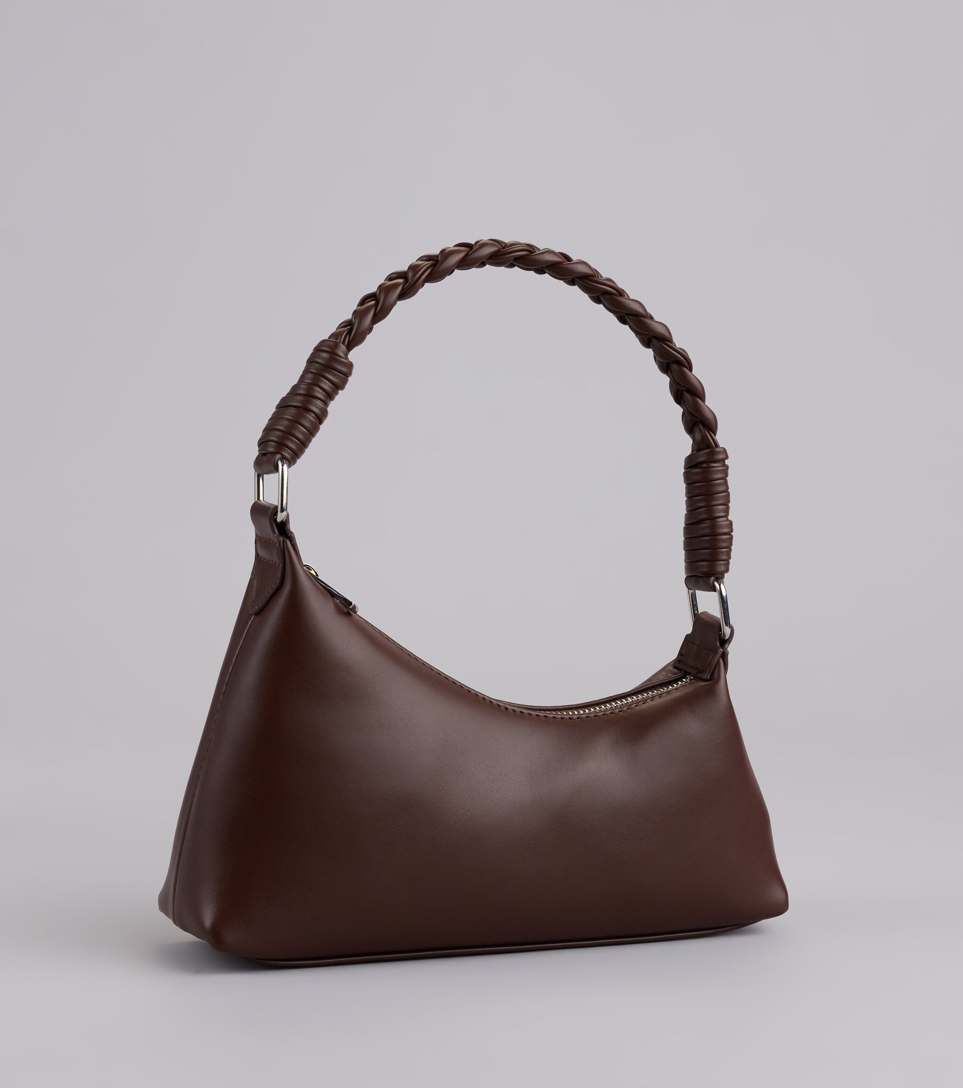 This faux leather shoulder bag levels up any fit with its luxe braided handle and sleek finish—perfect for coffee dates or evenings out!