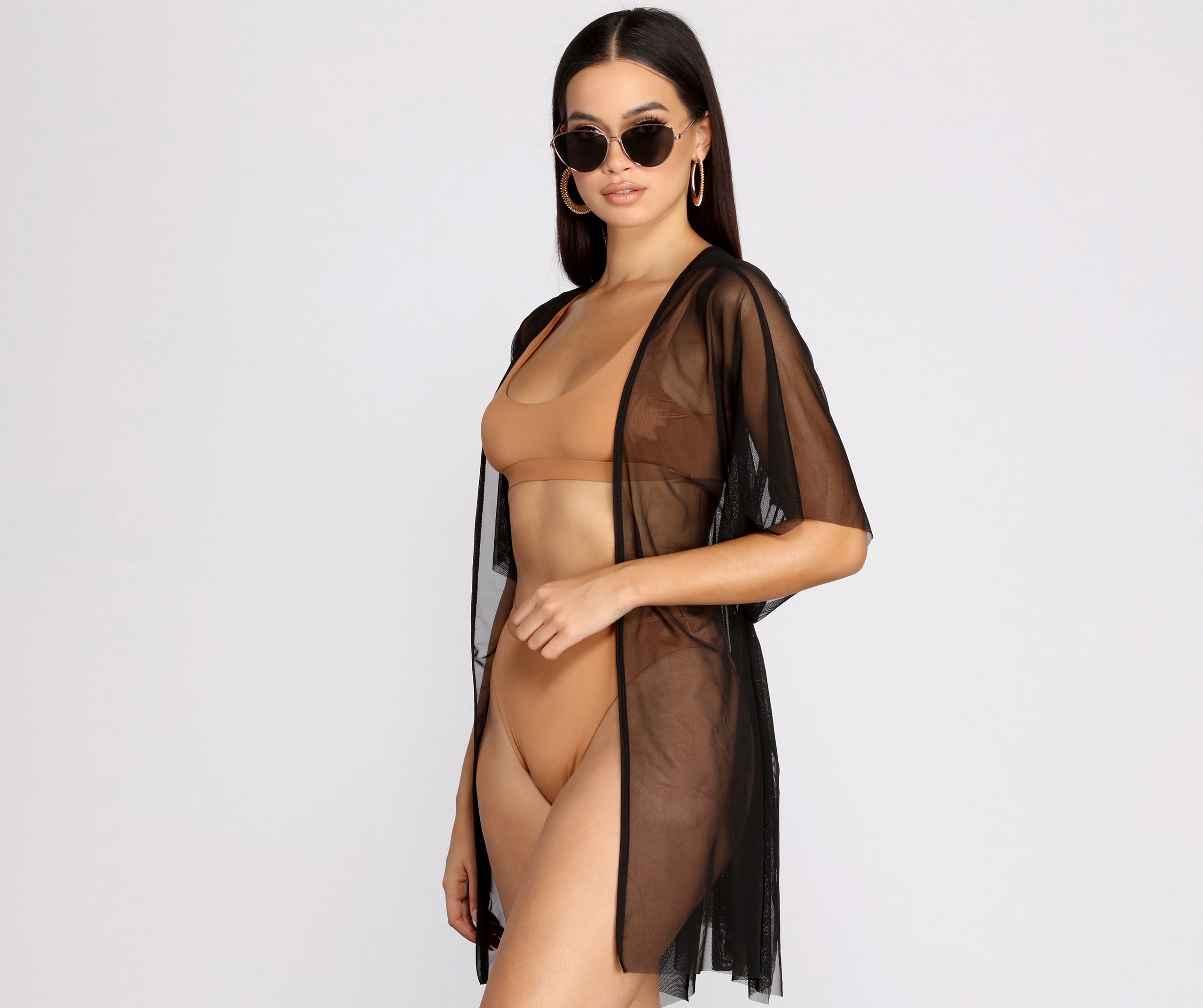 Go for a chic & sheer look by wearing this sheer mesh kimono over your trendy ‘fits! The perf spring time layering piece.