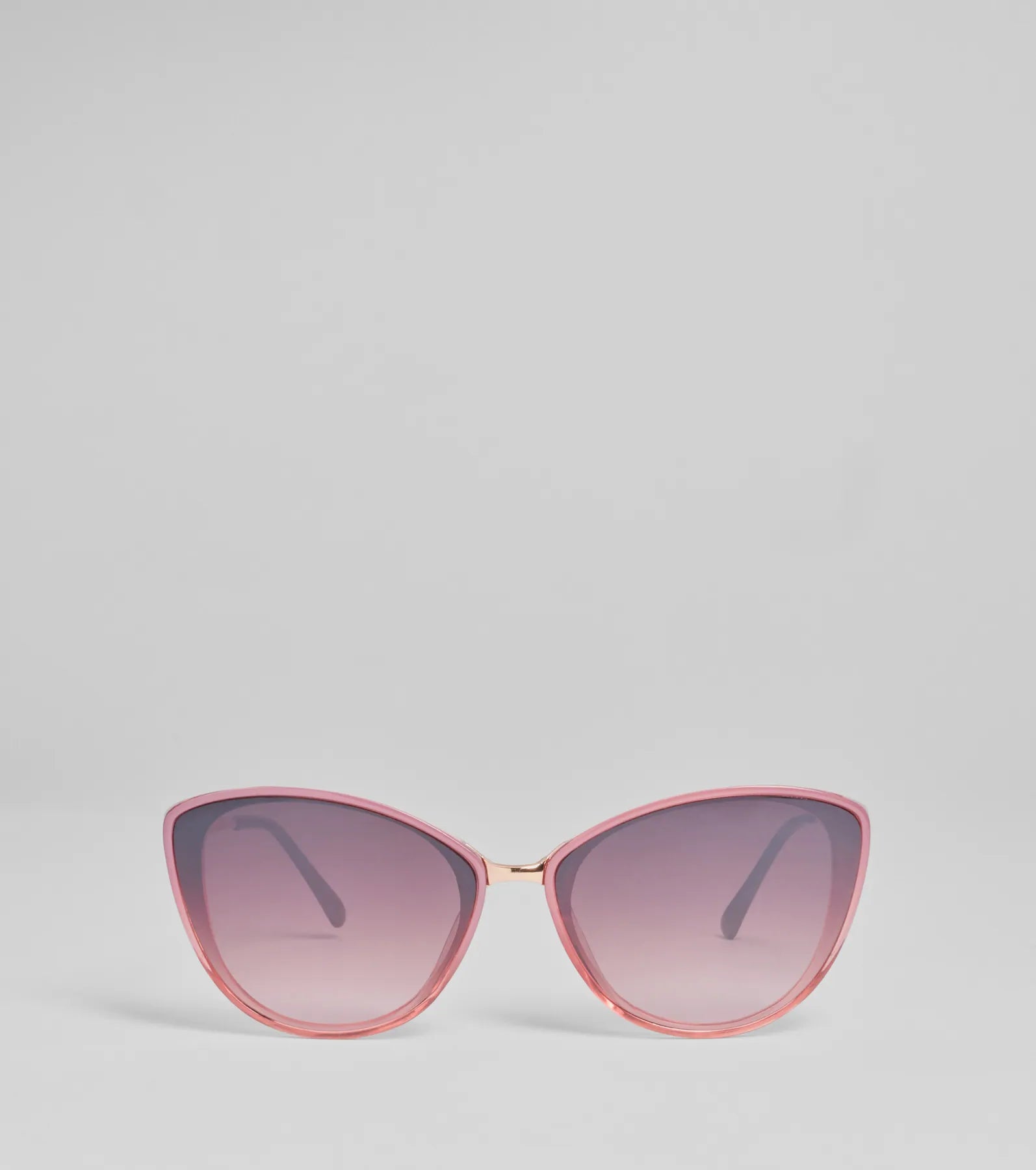 Amp up the chic factor of your everyday ‘fits with these sleek oversized sunglasses. They feature an oversized slightly angled design with a thin gold metal frame and nose bridge. thin gold metal arms with long cutouts. tinted lenses. and built-in nose pads for support. Pair these stylish shades with .