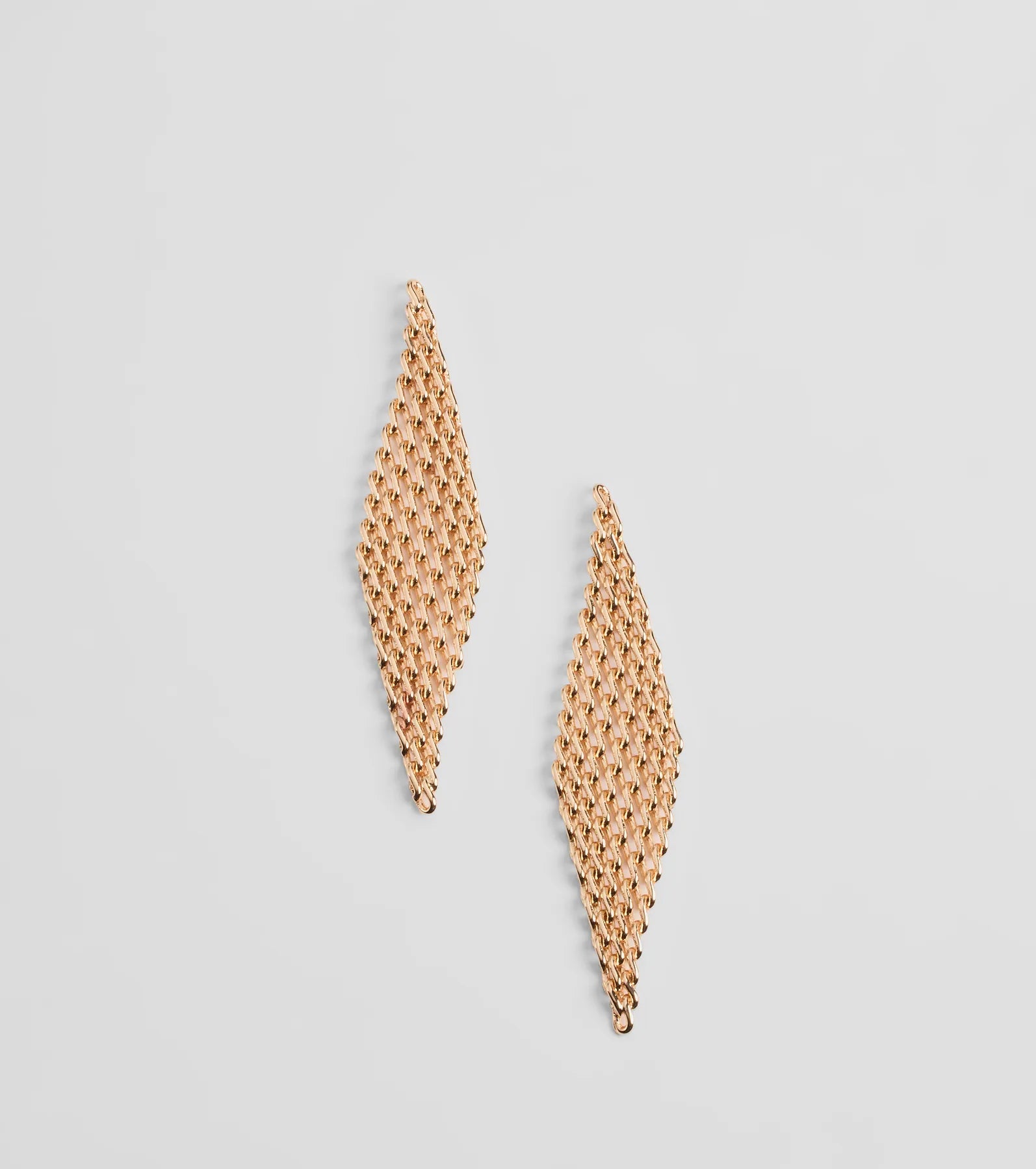 Add a chic marvel with these mesh statement earrings in a unique diamond shape with a secure post-back closure. Complete the look with a clutch.
