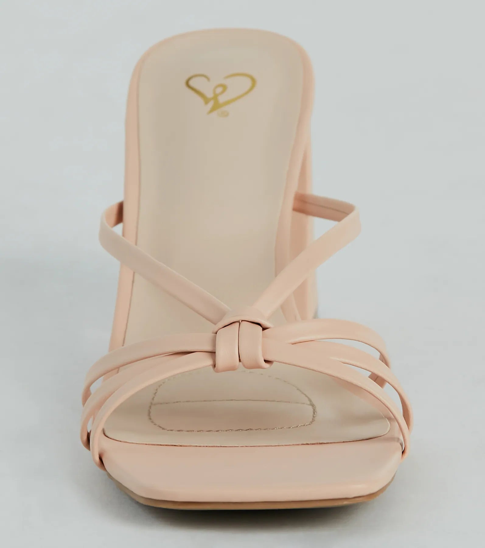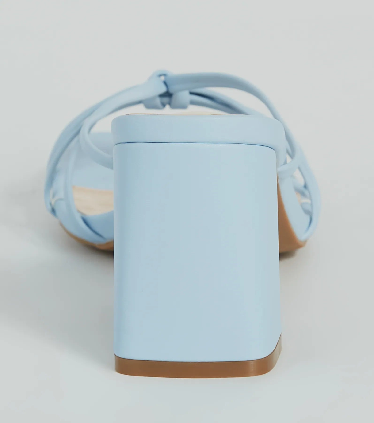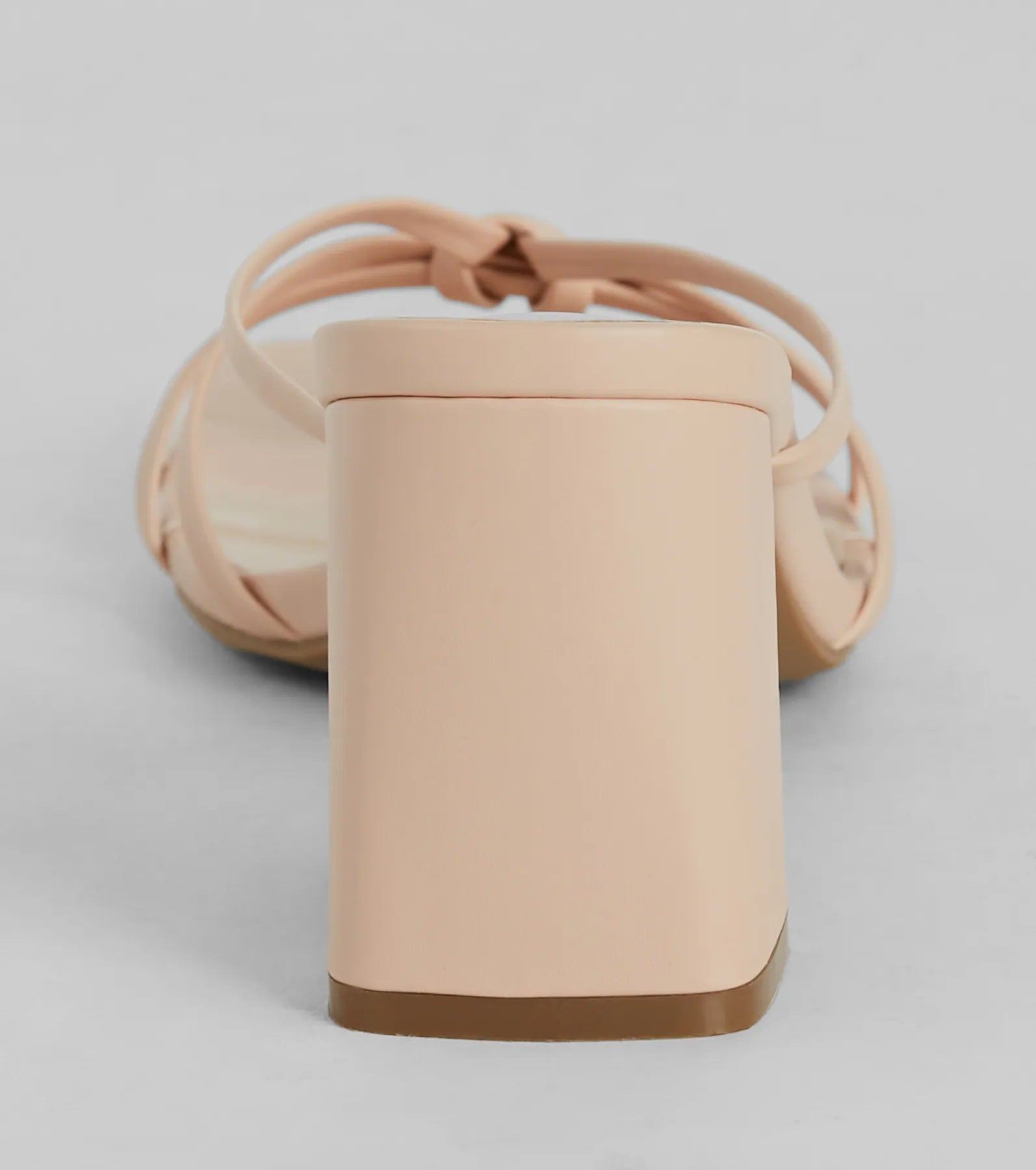 These strappy faux leather block heel mules will put you in a chic mood! The low-block heels are composed of smooth faux leather material and feature an open square-shaped toe with a thin knotted strappy design across the foot for a trendy look. Include an open back for easy on-and-off styling. Pair these mules with a !