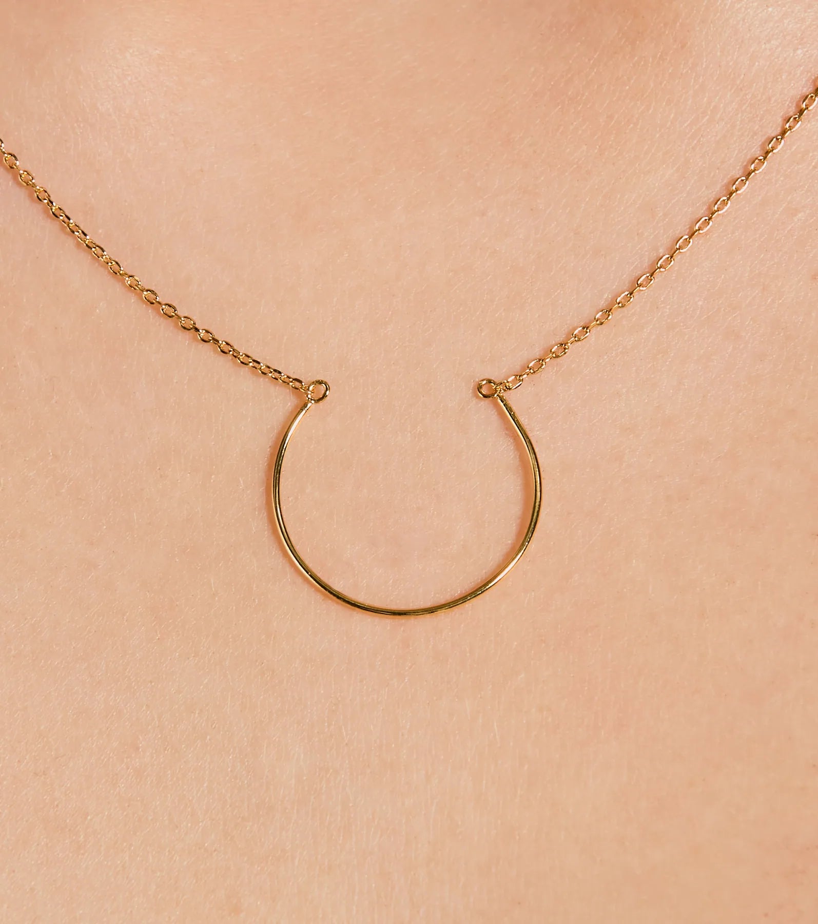 Effortlessly elevate your looks with this sleek charm necklace. a chic simple accessory for every day. It features a dainty chain with a delicate open circle charm at the center. Style with .