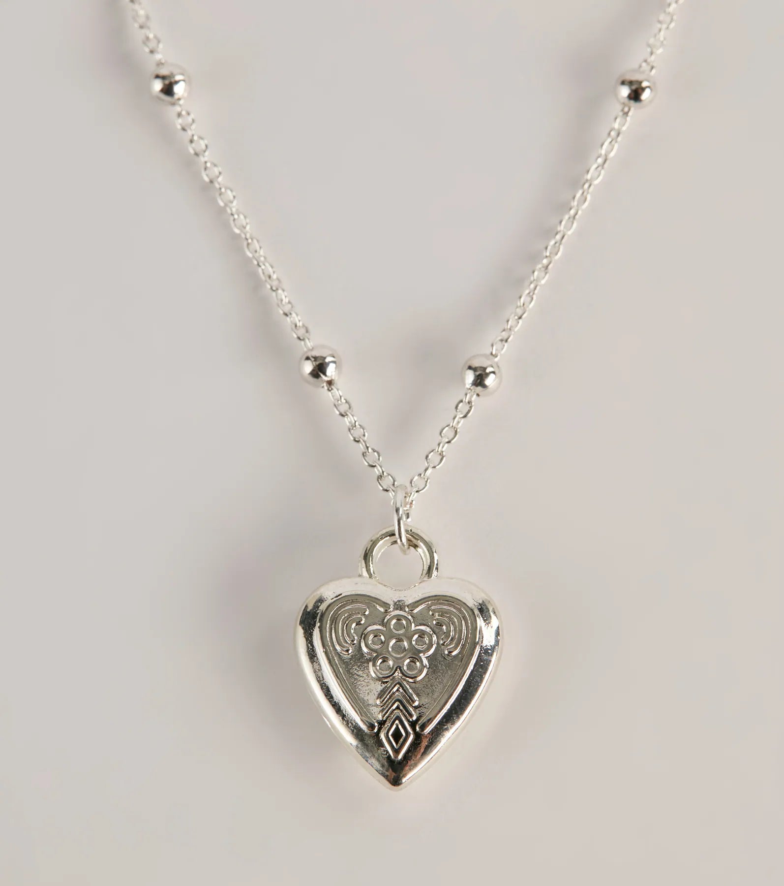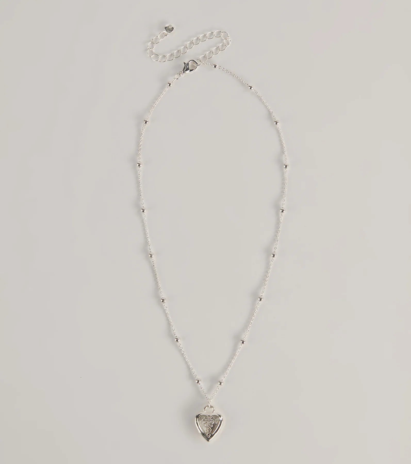 This necklace features a heart charm on a beaded dainty chain secured with a lobster clasp closure. Style with any outfit for the perfect look.