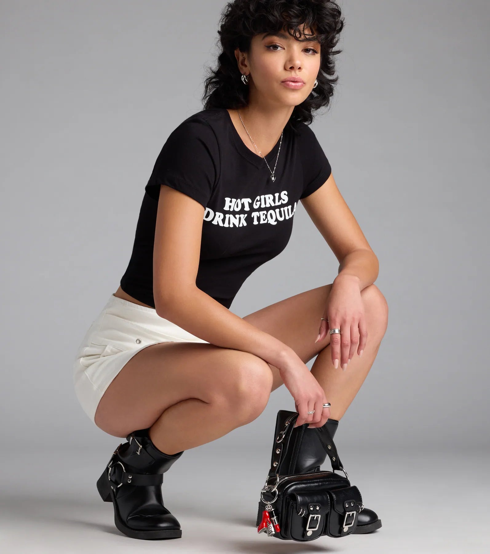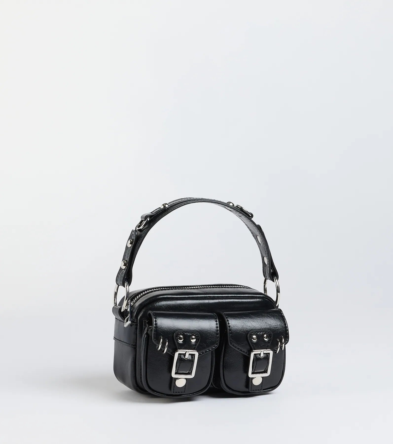 A cool girl trend. This faux leather mini bag gives an edgy vibe with plenty of cargo space for your essentials.