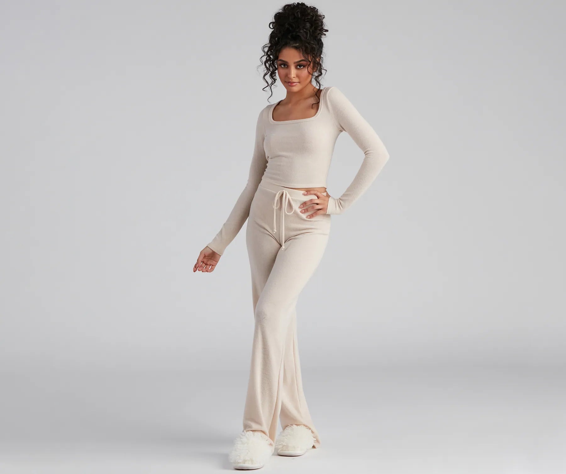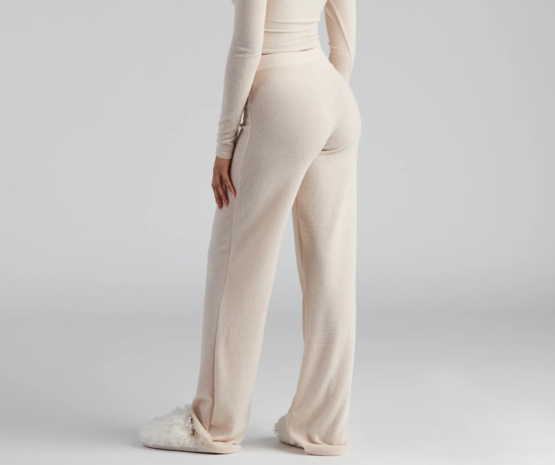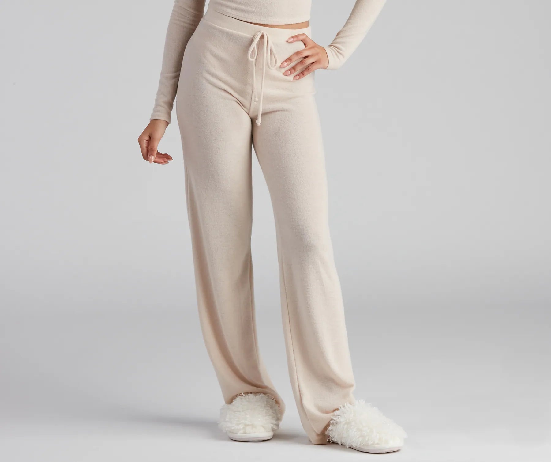 Yout ticket to a cozy fit’ is surely this pajama pant for those lazy Sundays! It features an elasticized high-rise waist. front tie accent. and a relaxed hem composed of super-soft brushed knit fabric. Complete the look in the matching pajama top.