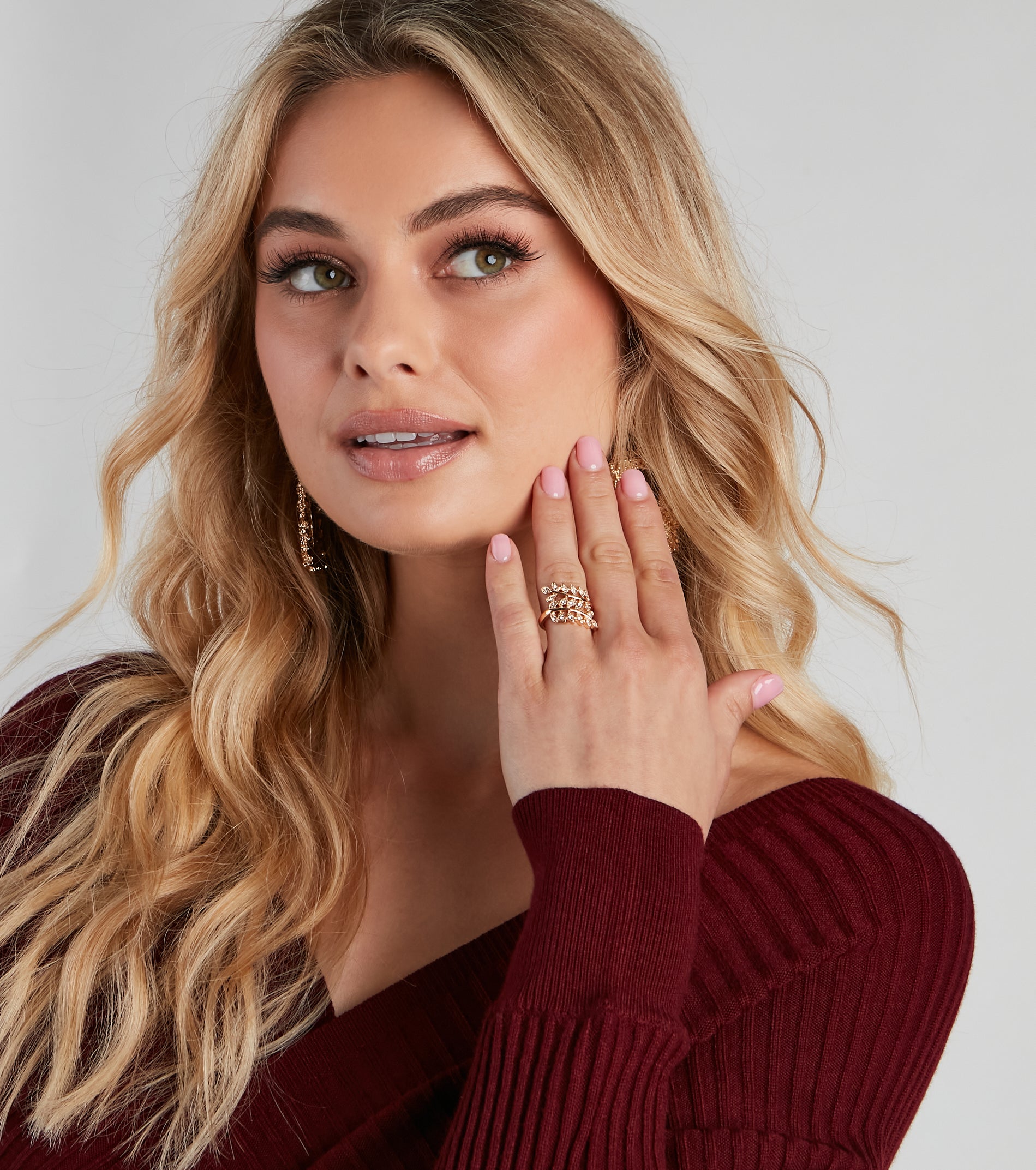 Add a subtle sparkle to your look with this dainty and chic statement ring! Featuring a leaf-shaped design with mini rhinestone embellishments. this ring would be a perfect accessory for your formal looks. Style with for a pretty glam vibe.