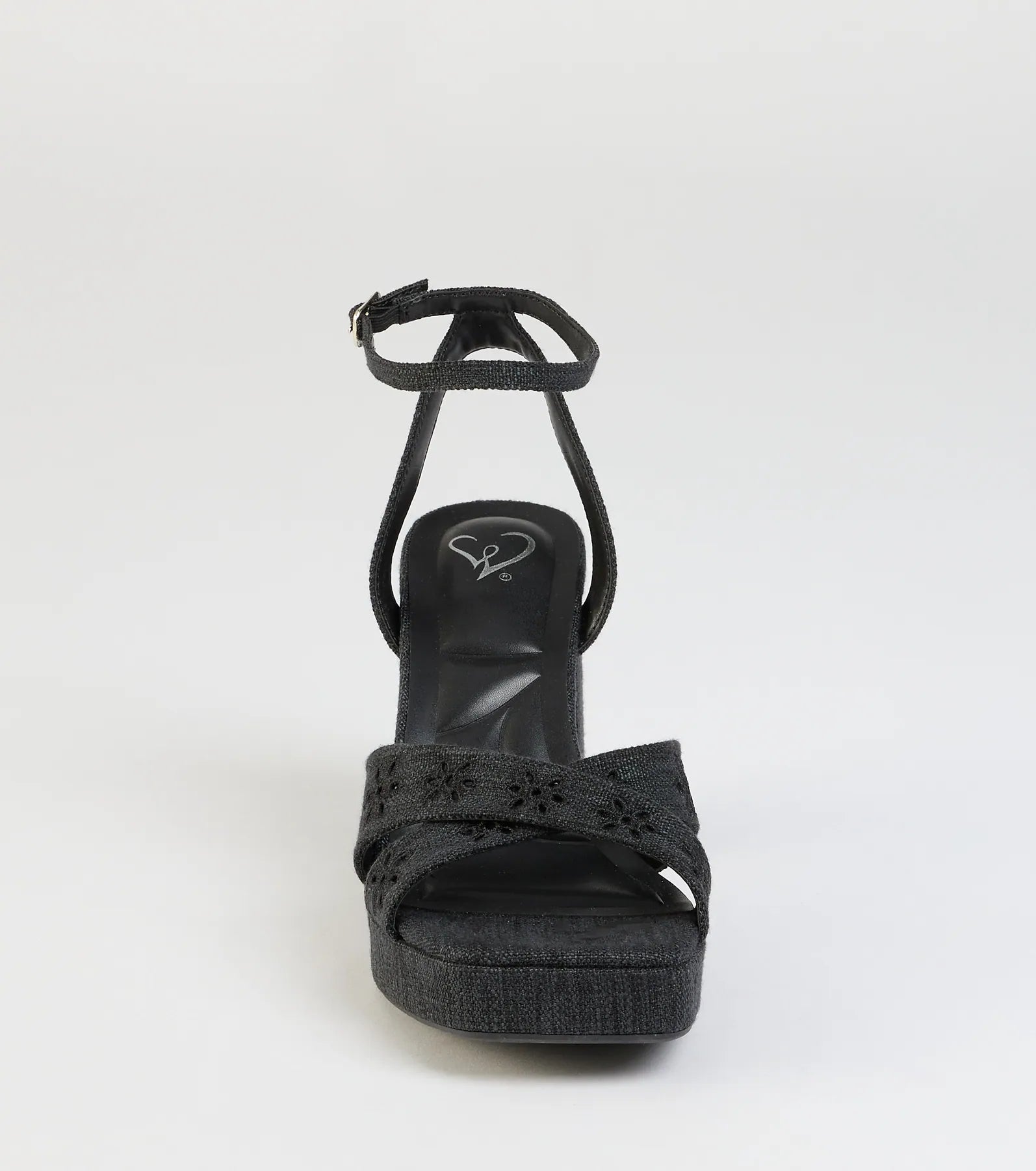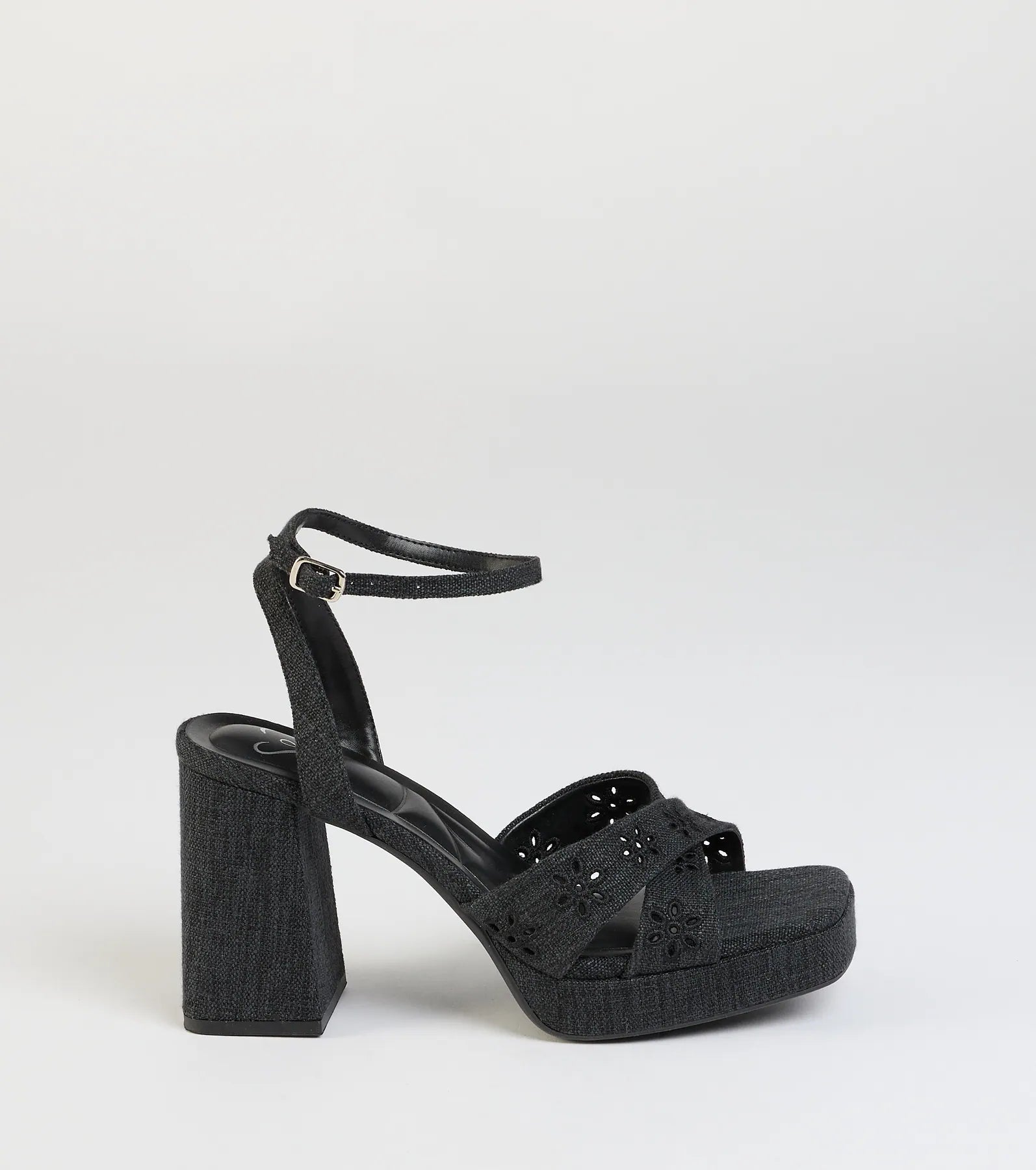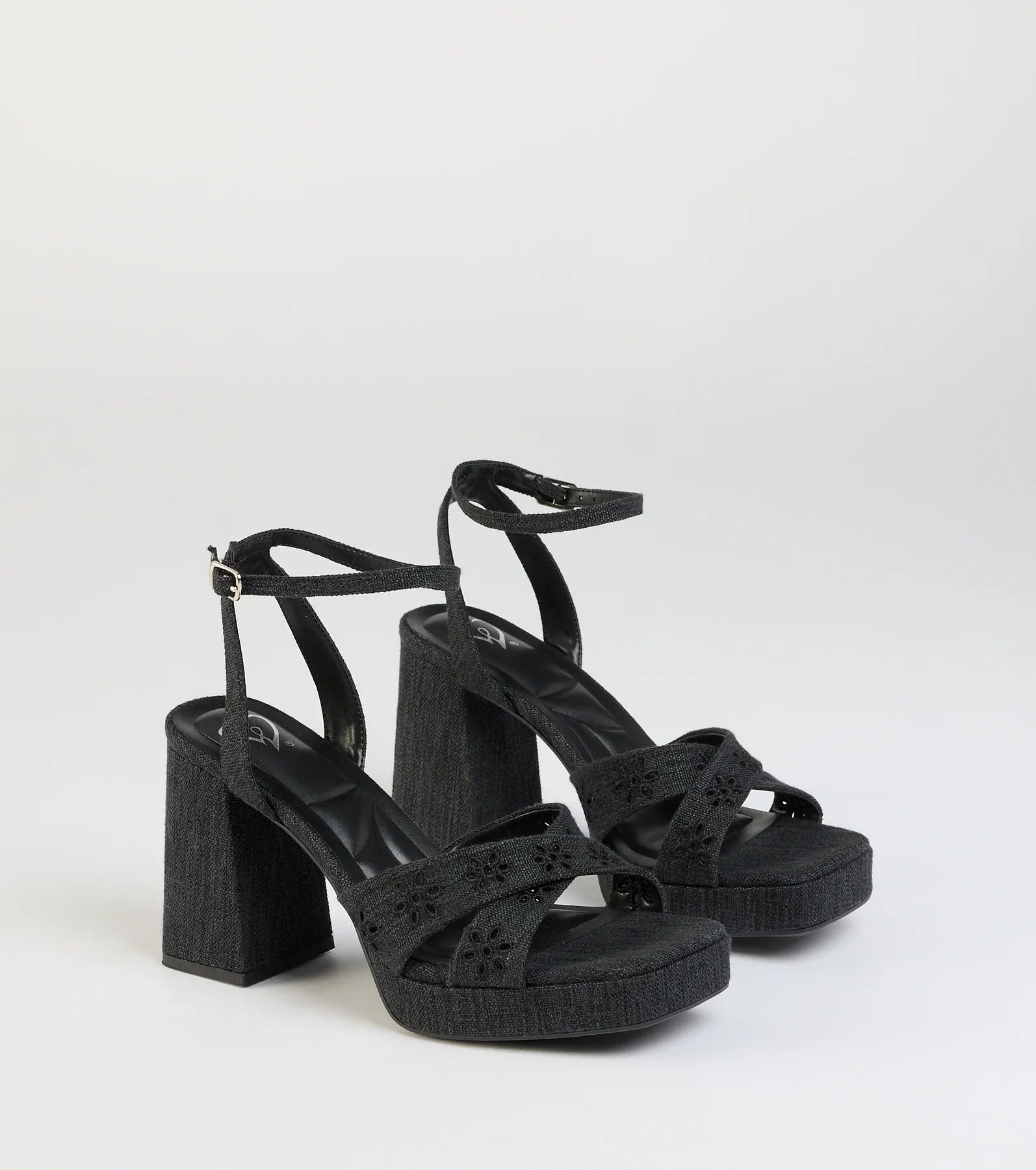 Head out for the day or sunset in these sweet platform block heels with a unique eyelet strap. perfect for spring to summer styling!