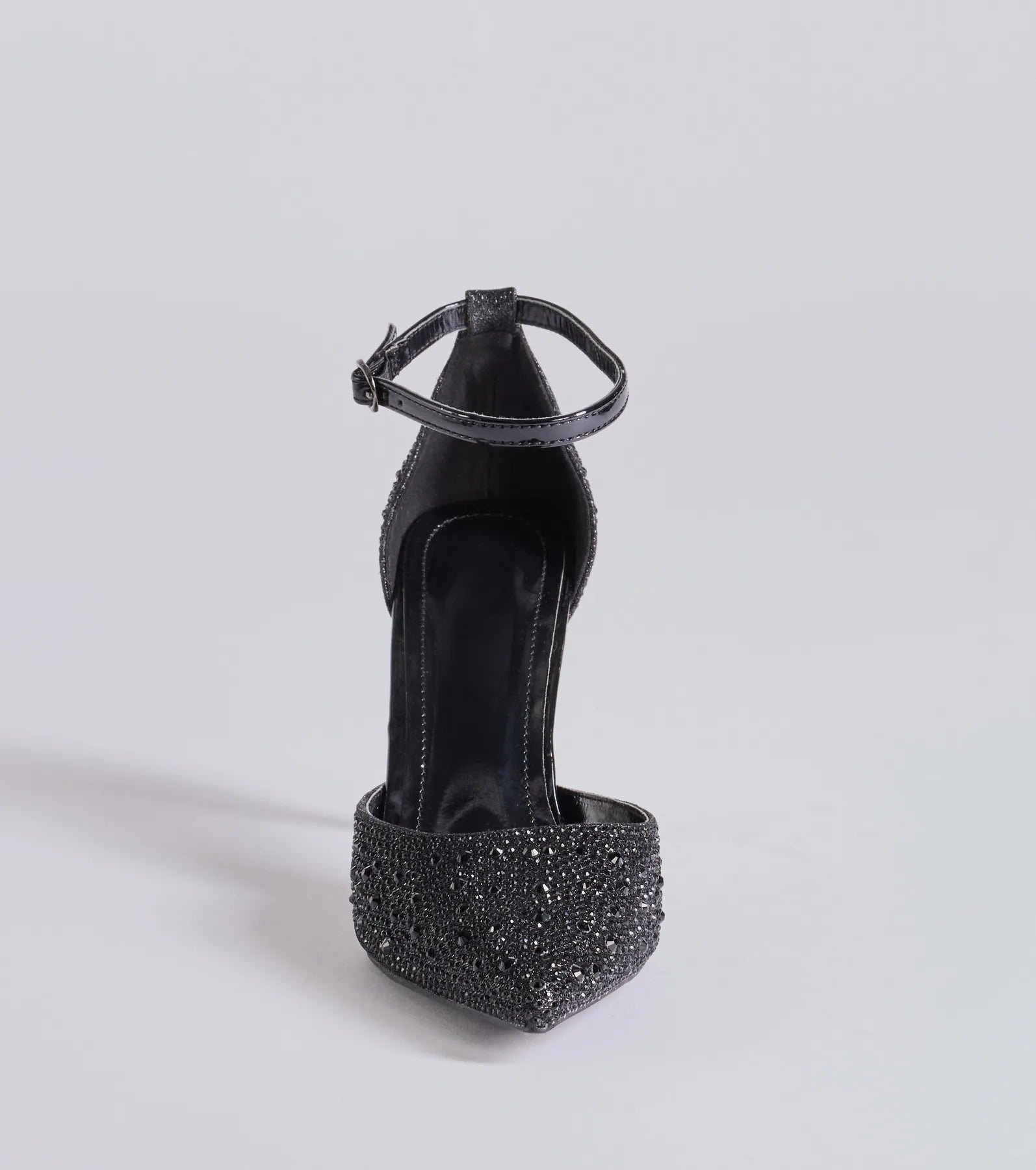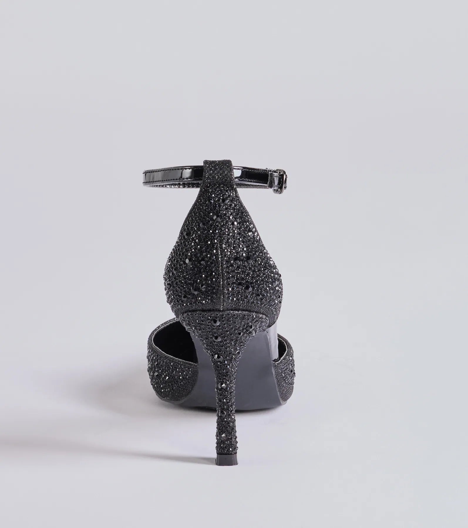 Dazzle and stun with every step in these rhinestone stiletto pumps perfect for pairing with a little black dress.