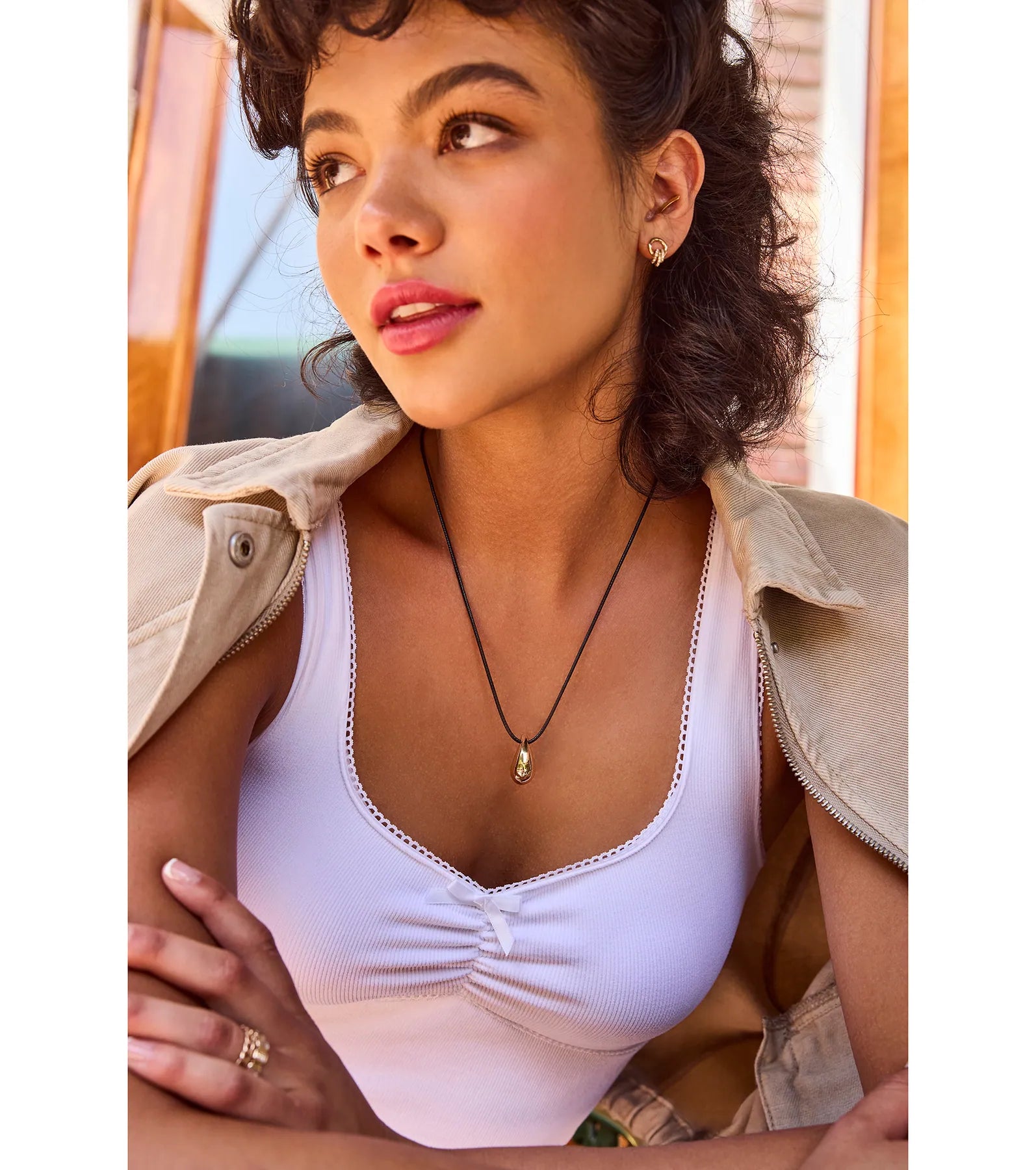 From parties to casual events. this necklace is here to charm! It features a sleek cord with a teardrop-shaped pendant and a back adjustable chain with a lobster clasp closure to secure the style. Complete the look in a flowy .