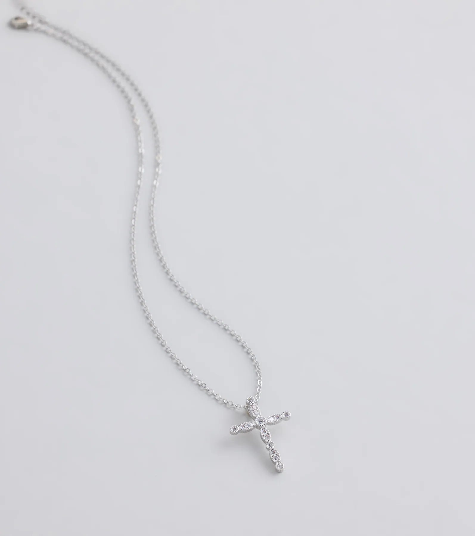 Radiate a divine sparkle in this dainty chain necklace featuring a cross pendant with small cubic zirconia embellishments.