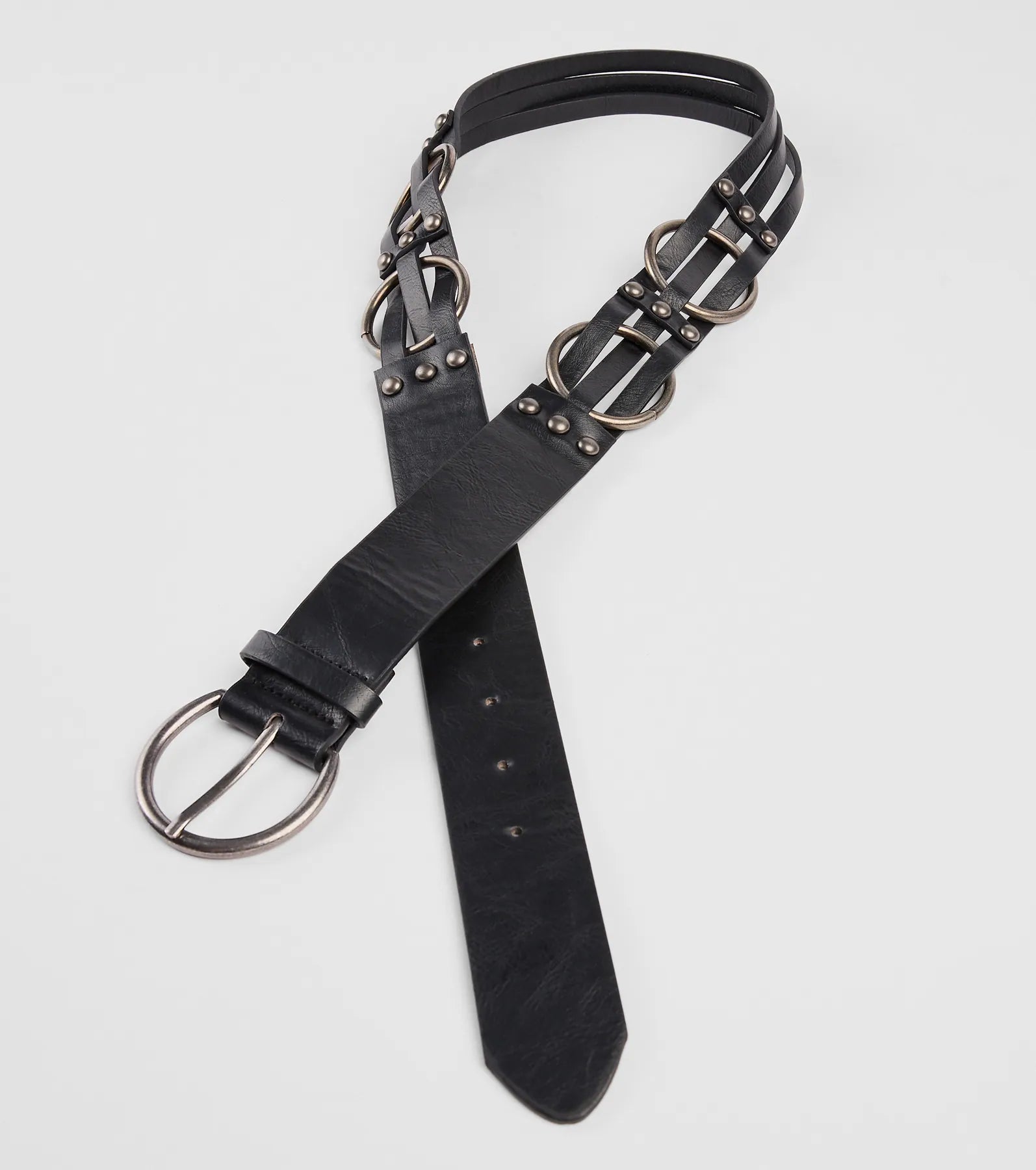 Accentuate your style with this faux leather belt. The faux leather strands flow through chic o-rings that add a trendy touch to elevate any outfit instantly.