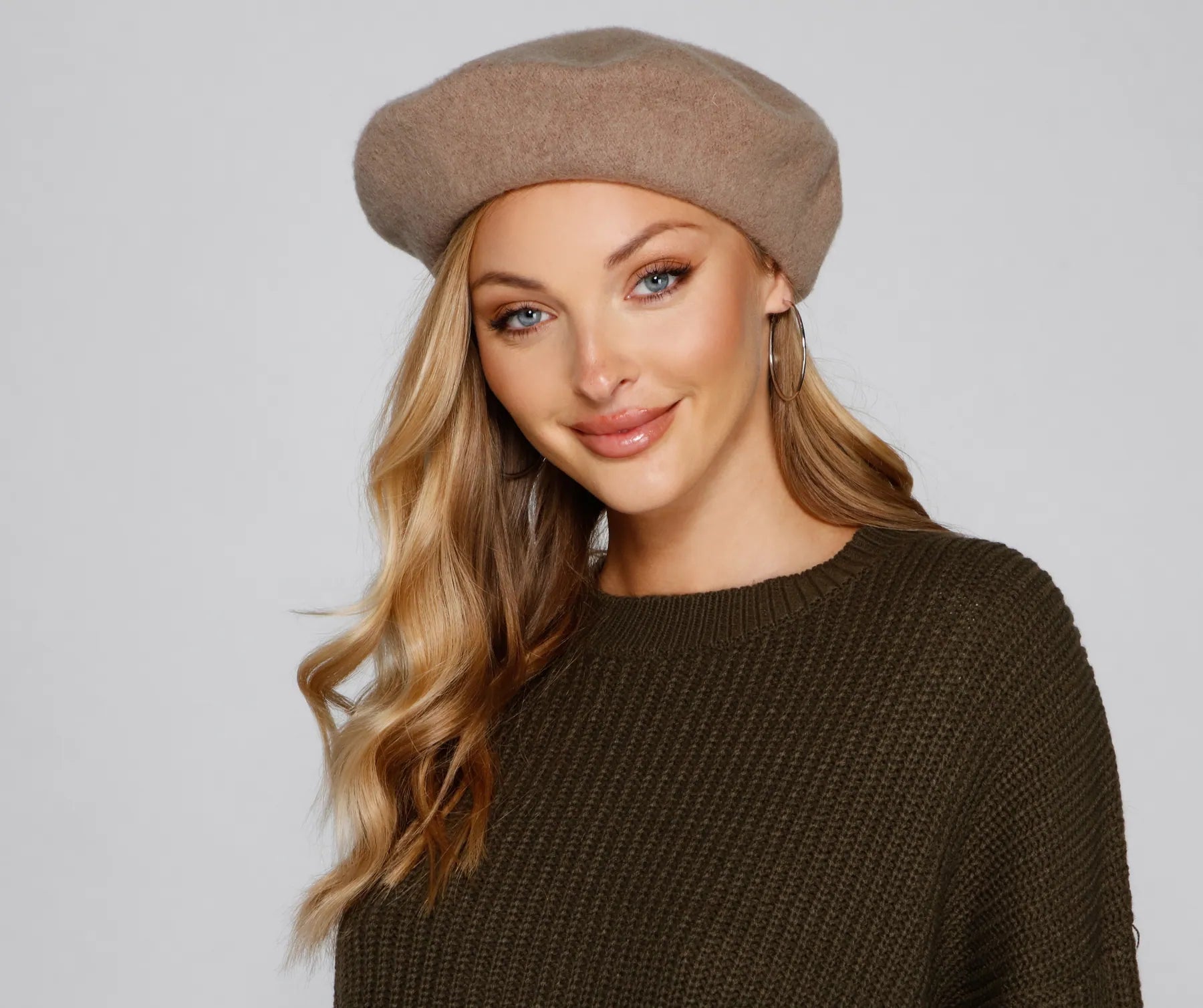 Keep it endlessly chic with a beret to adorn tresses with! The beret features a classic beret-styled brim and is composed of a wool knit material. Complete look with a ribbed midi dress and .