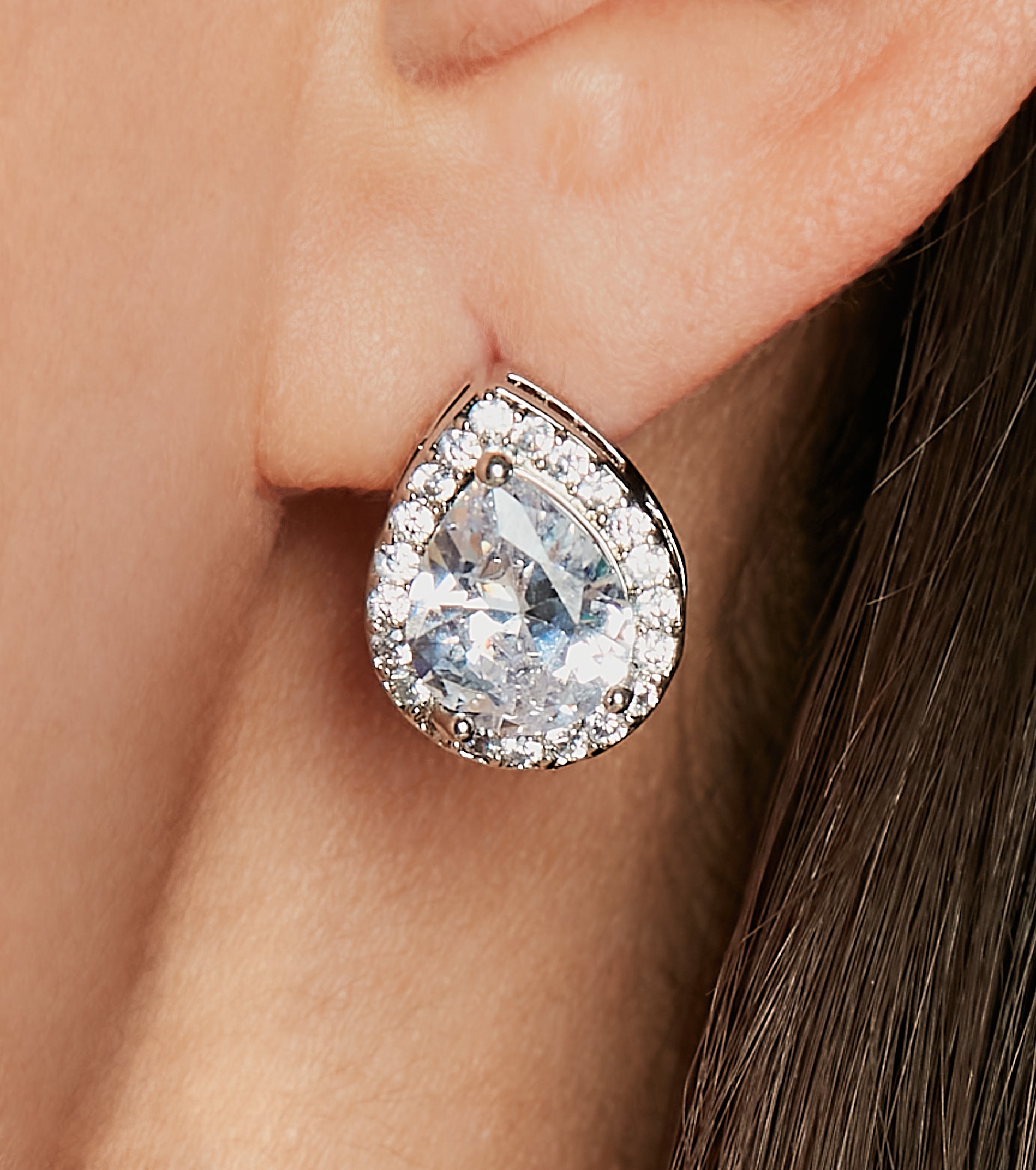 Move through the night with the endless elegance of these stud earrings! Featuring a teardrop shape with delicate mini?cubic zirconia trim around a gleaming?cubic zirconia stone perfect for showcasing your glamour. Complete the look with a stunning for a special occasion!