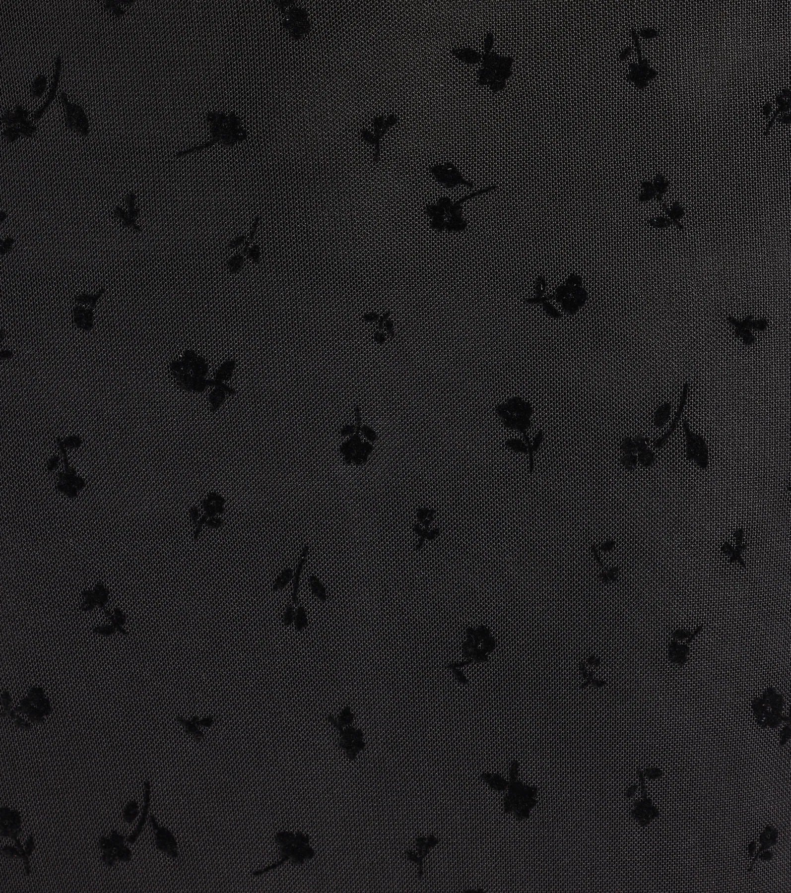 • Flocked floral pattern. mesh fabric lined with stretchy knit