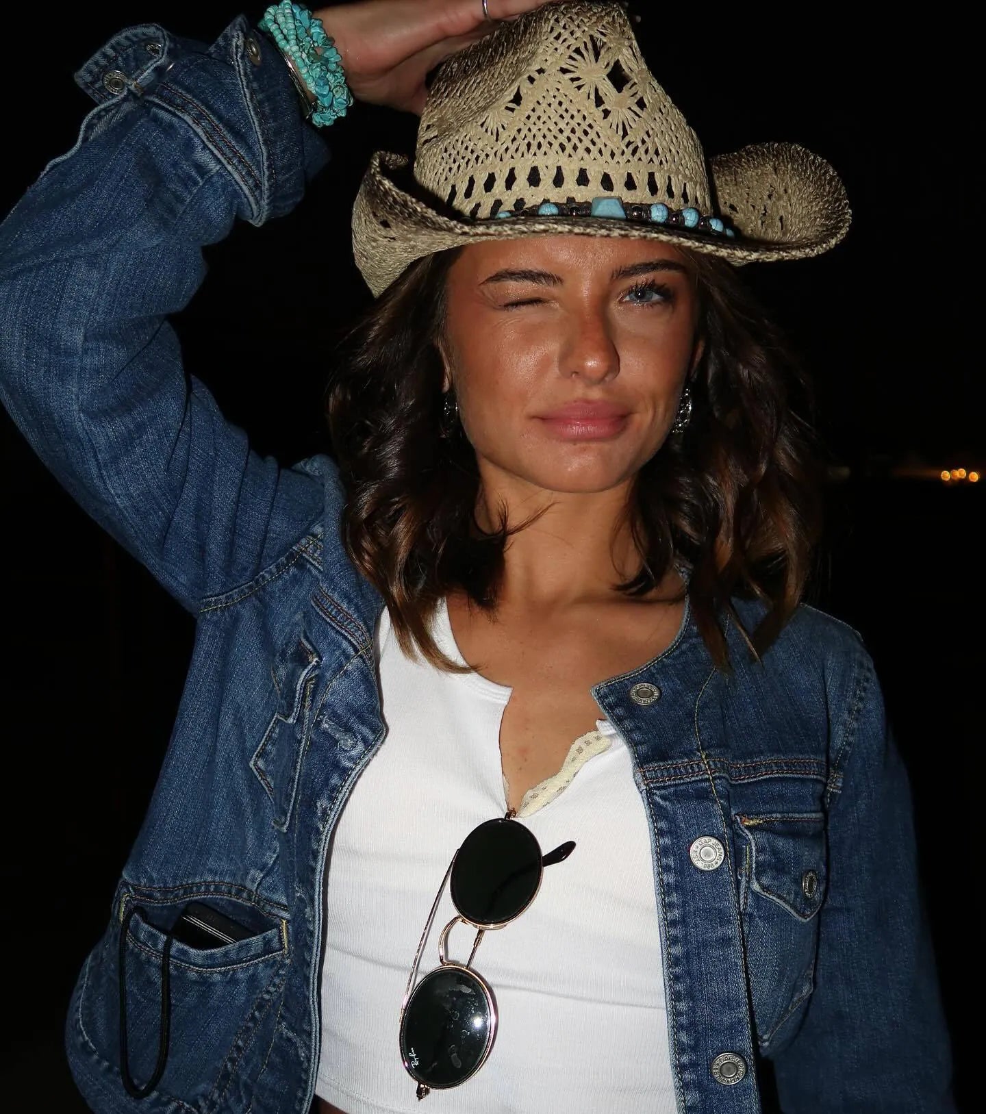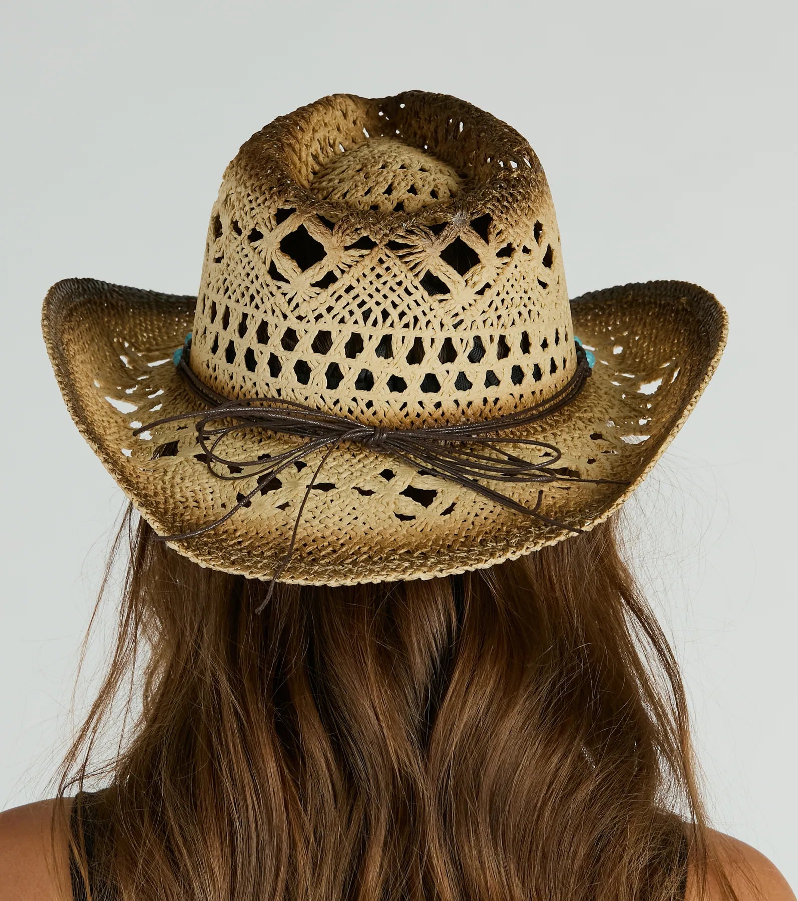 Top off your cowgirl core look with this straw western hat at bachelorettes. festivals. or country bar nights! Made from distressed straw material for a rustic feel.? Featuring a string tie bow adorned with a colorful stone and metal ball trim. this hat adds a touch of glam to the classic curved wide brim. Complete the look in .