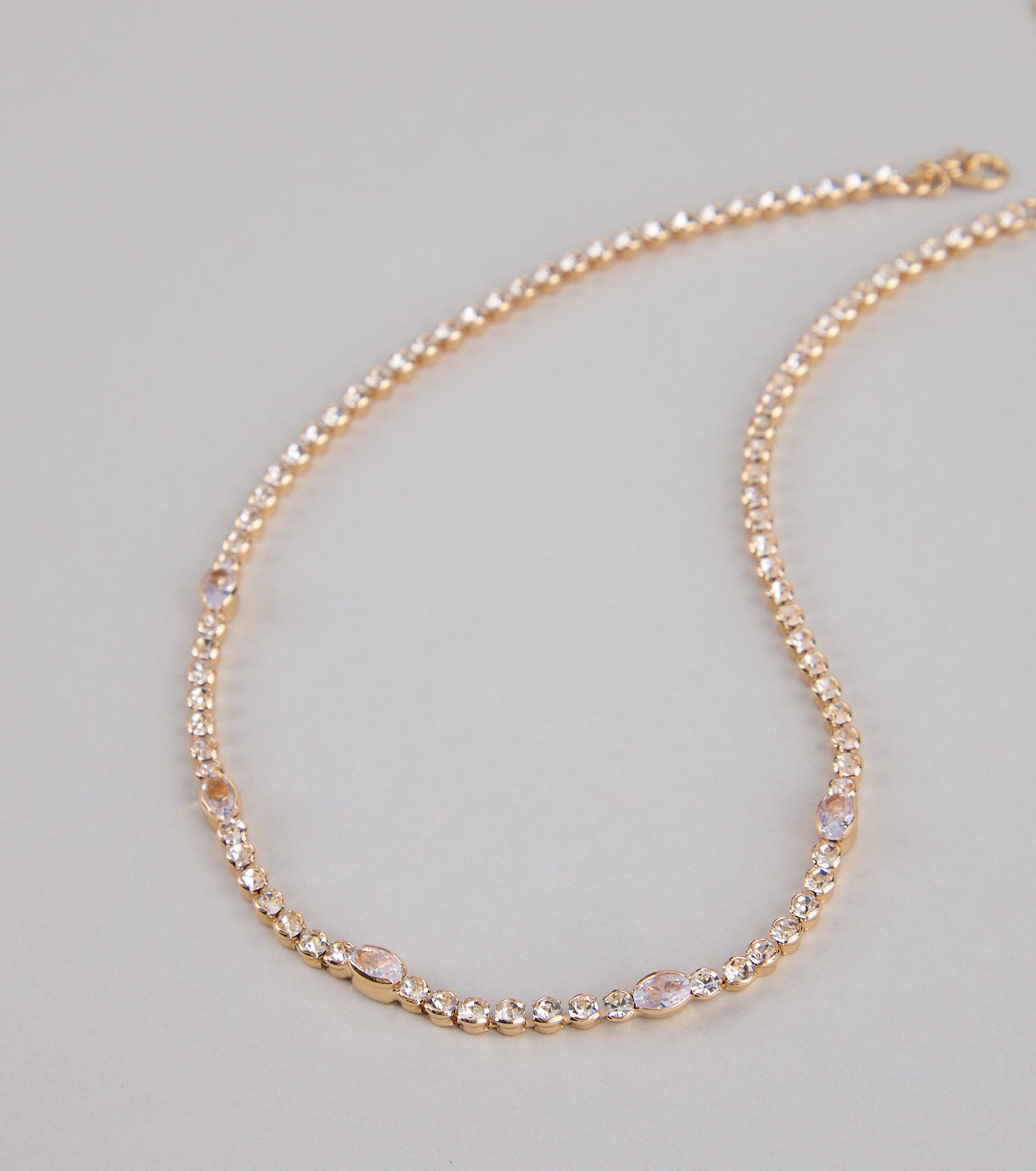 For the girls who like their sparkle with a little extra glow. This necklace pairs classic shine with oval rhinestone accents for a luxe-meets-trendy vibe.