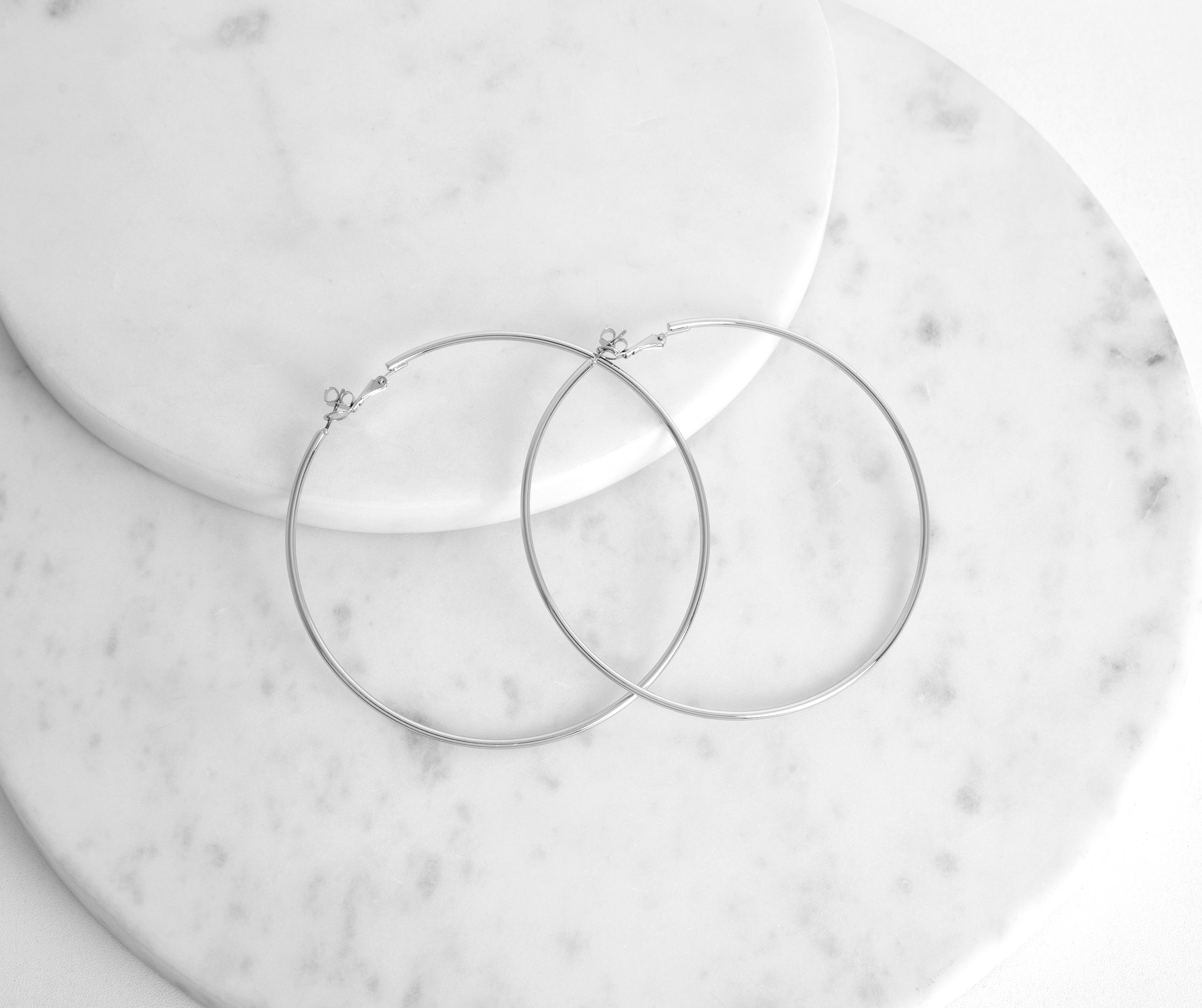 These extra large hoop earrings are a must-have for your jewelry collection. With their sleek finish. they add the perfect amount of glam to any outfit. The omega closure is great for easy wear. Accessorize with them for a day date with your bae! Pair with a??and your?favorite mom jeans?to elevate the look.