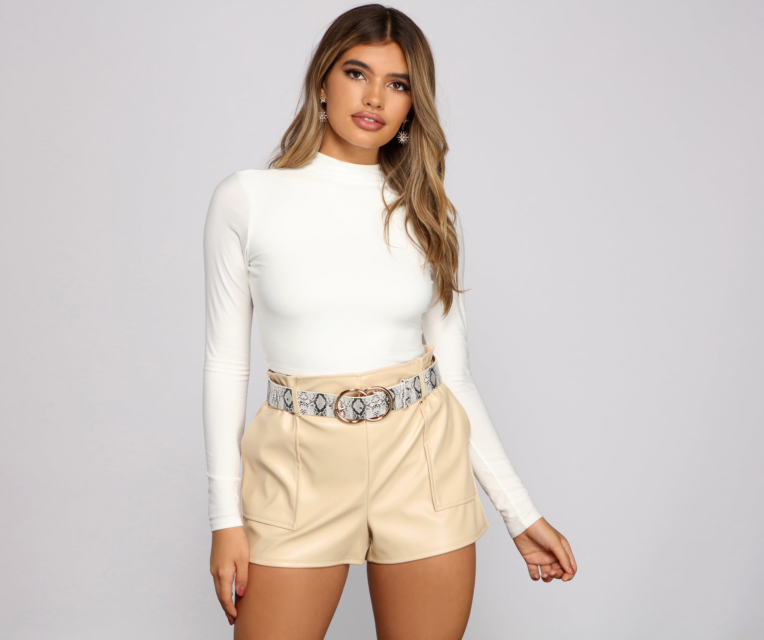 Keep it sleek in a snake print belt to elevate your look! The belt features a faux leather material. a trendy snake print. and a double O ring buckle. Complete look with a pair of .