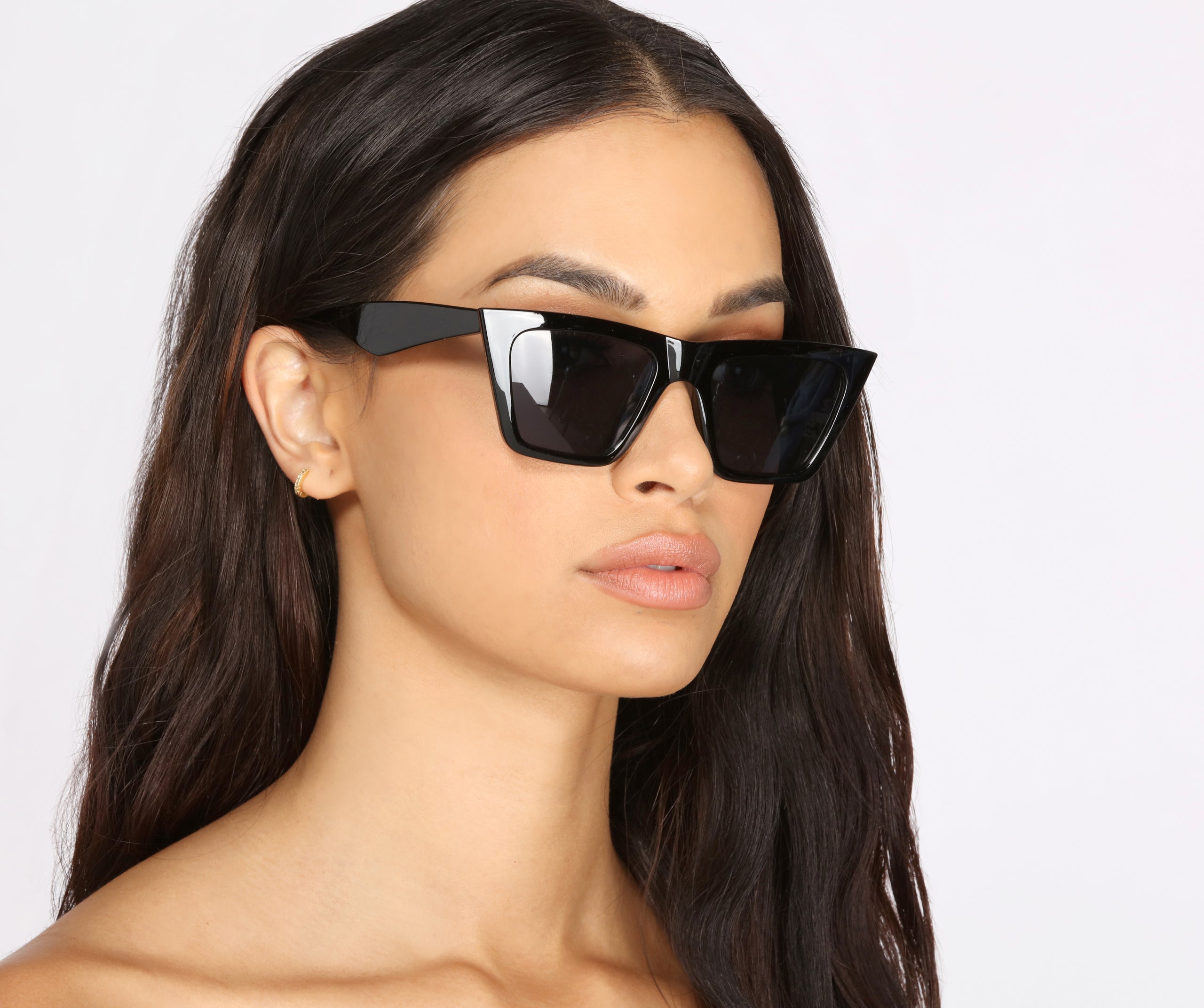 Stun on them all in cat-eye sunglasses! Keep your on point with a pair of cat-eye sunglasses that feature a flat top and dark tinted lenses that go with everything. Complete your look with a or .?