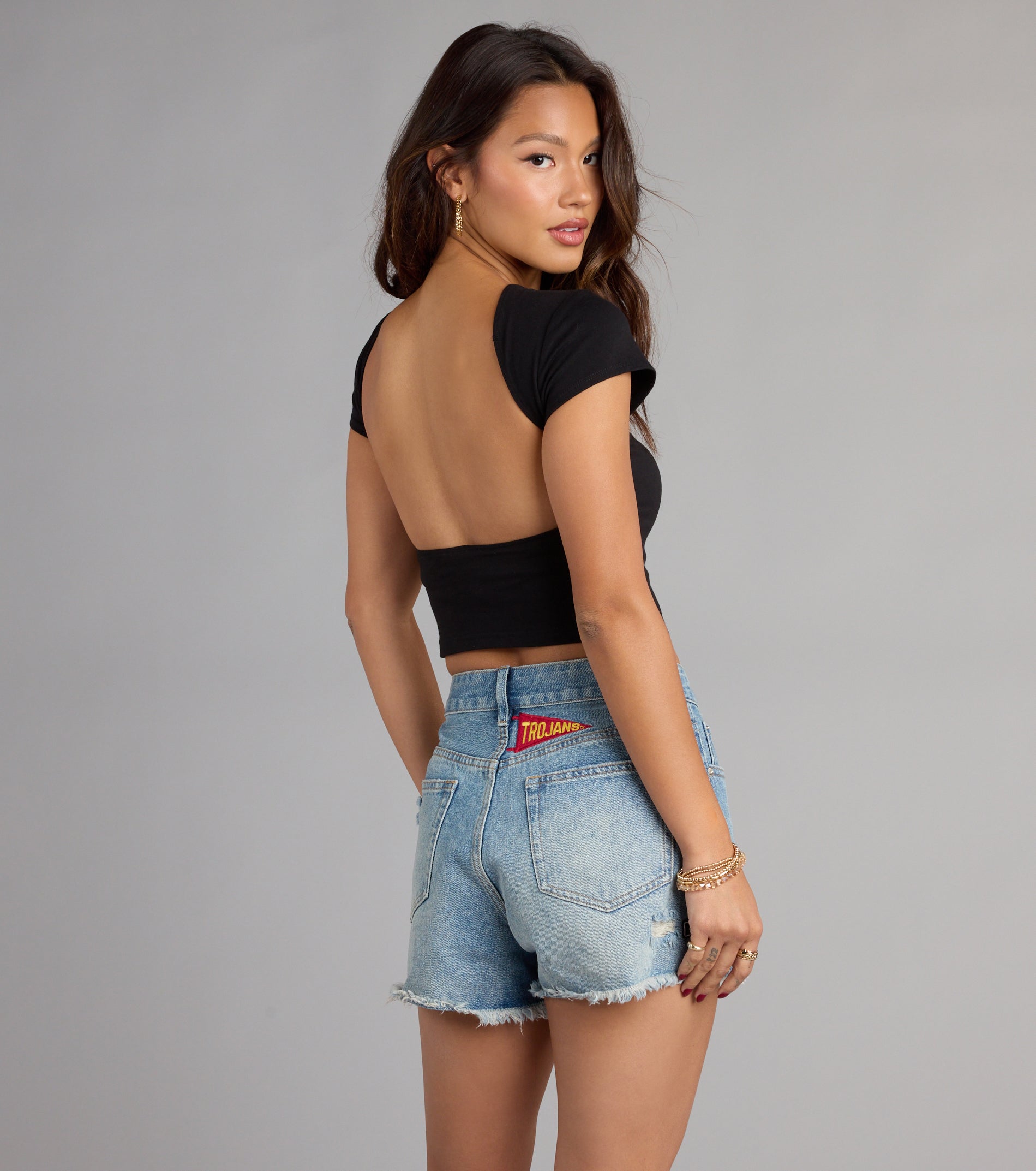 Repping USC® never looked this bold. This crop top keeps it classic in the front and surprise-open in the back—made for game days or post-win pics.