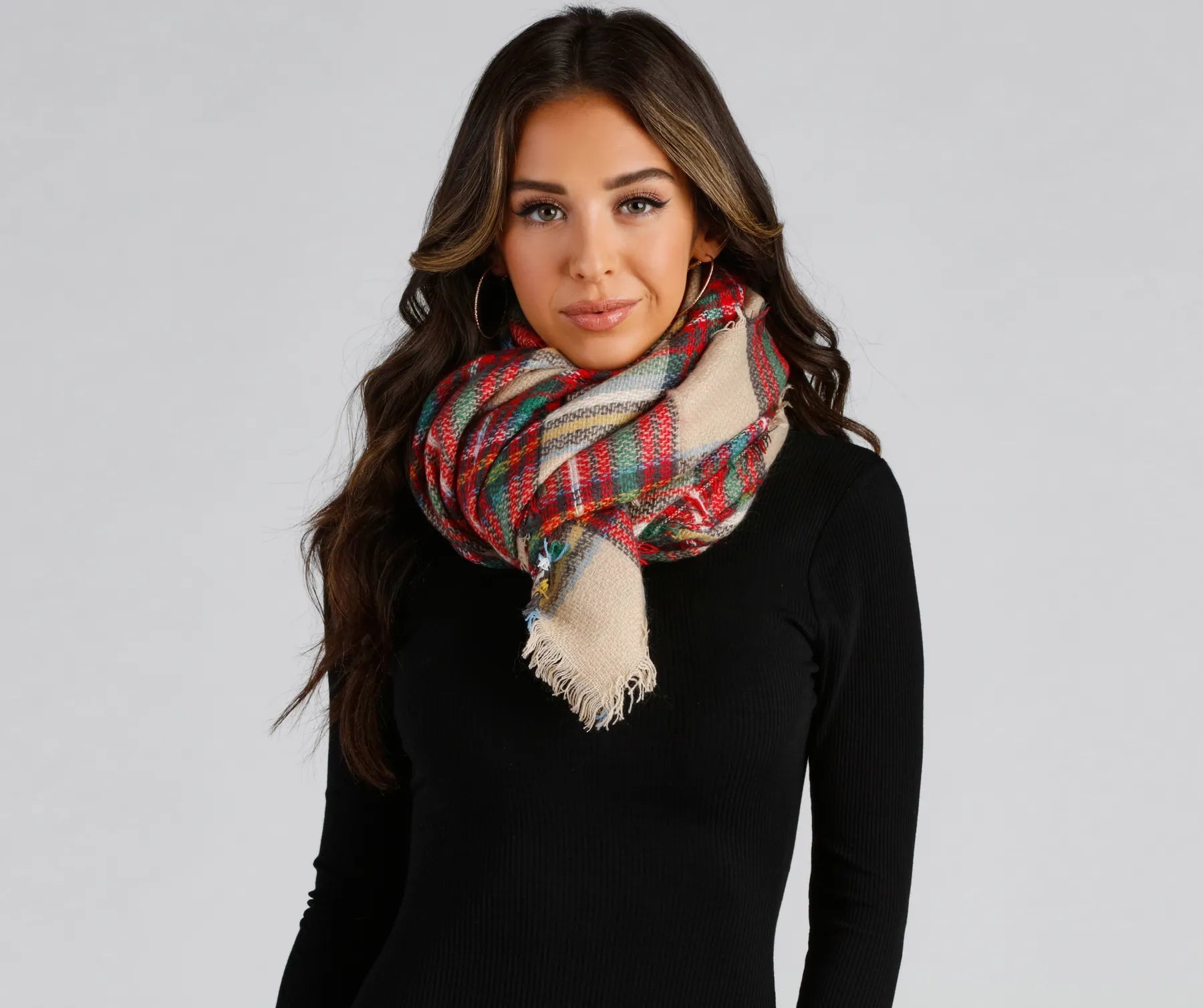 Warm-up by the fire in this plaid frayed scarf that’s perfect for styling with and a cup of cocoa in hand!