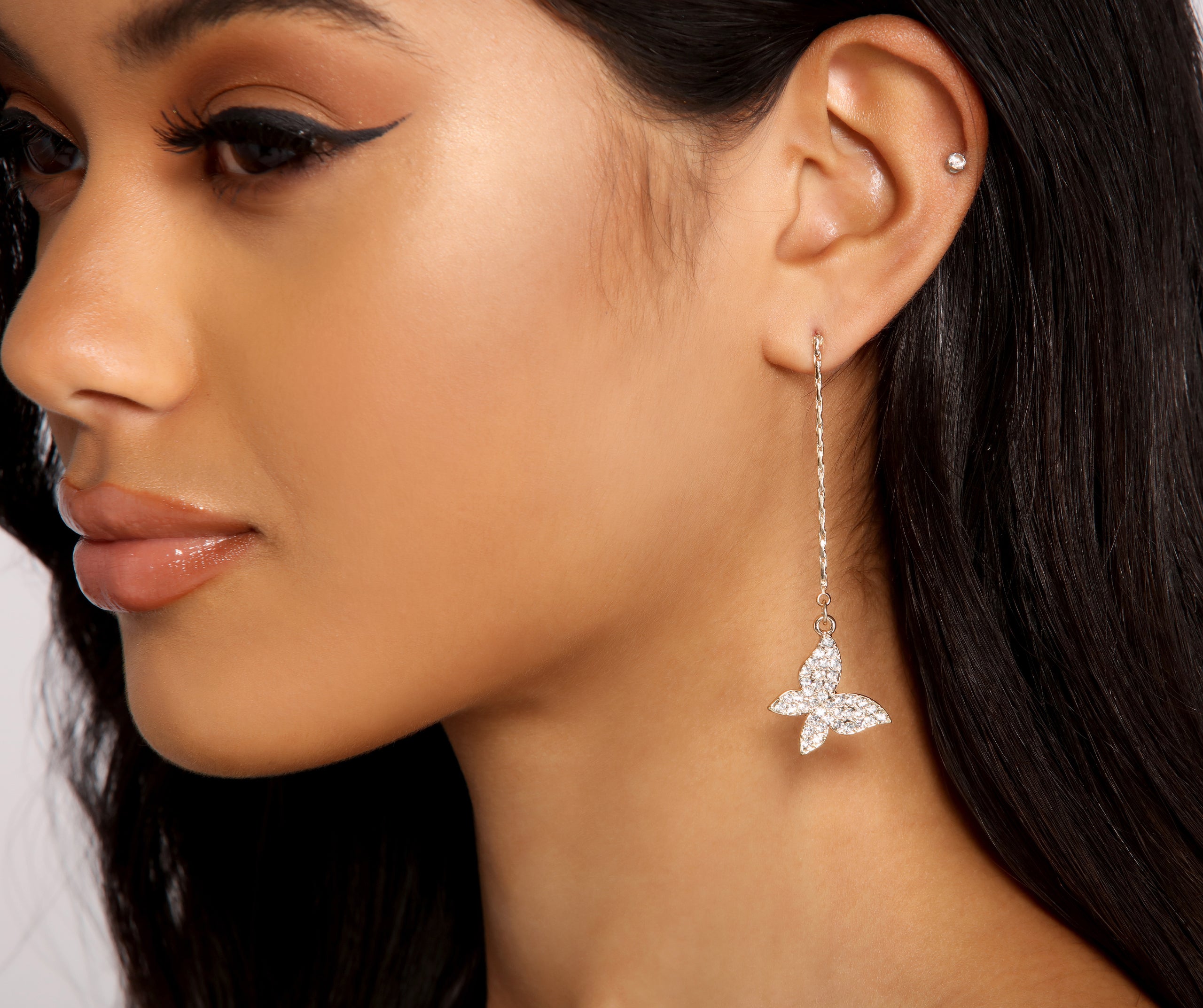 You’ll def flutter some hearts in these adorable butterfly charm earrings! Featuring a cascading drop design with rhinestone embellishments. these earrings couldn’t get any more whimsical. Pair with a??and some??for your next party.