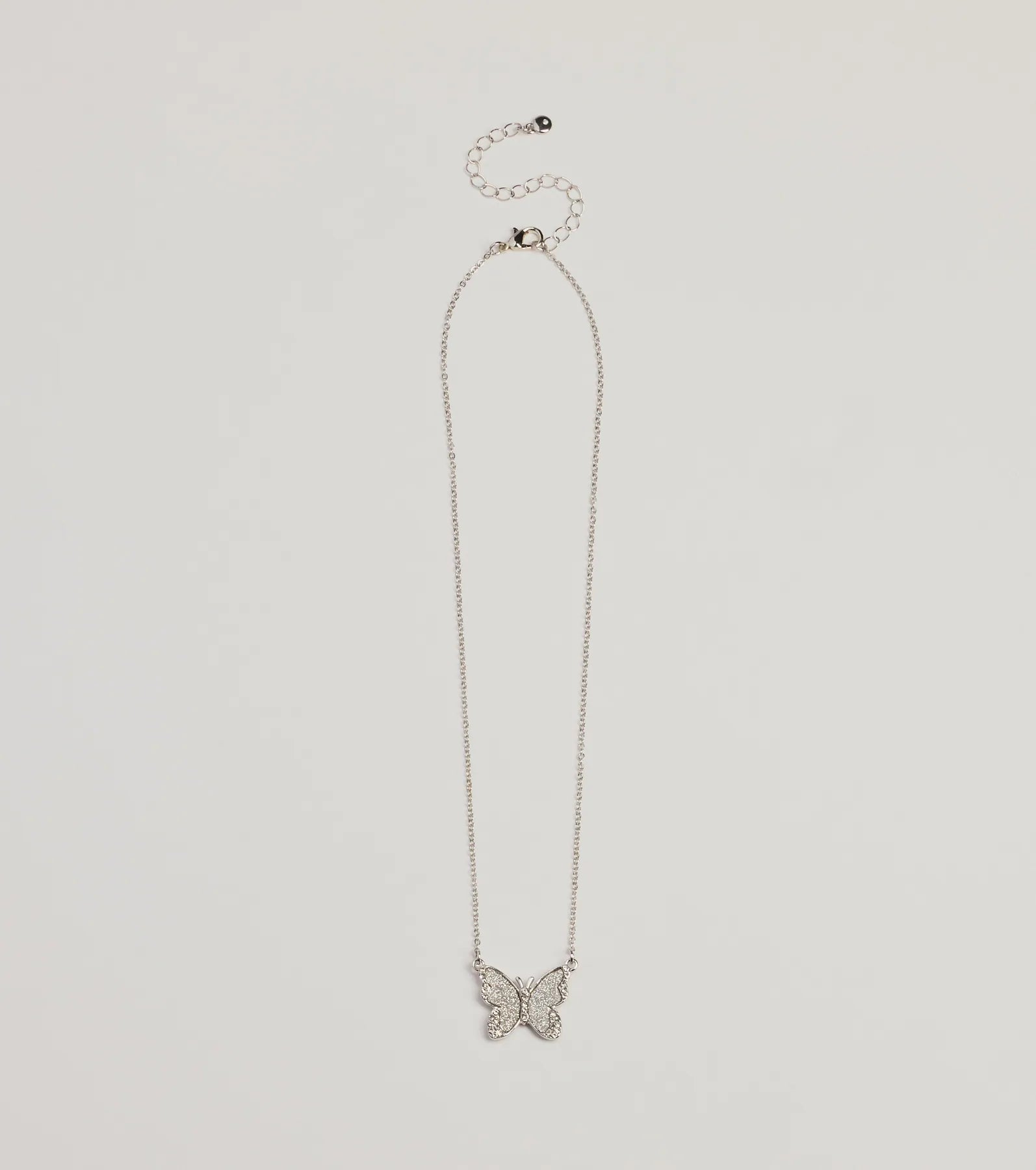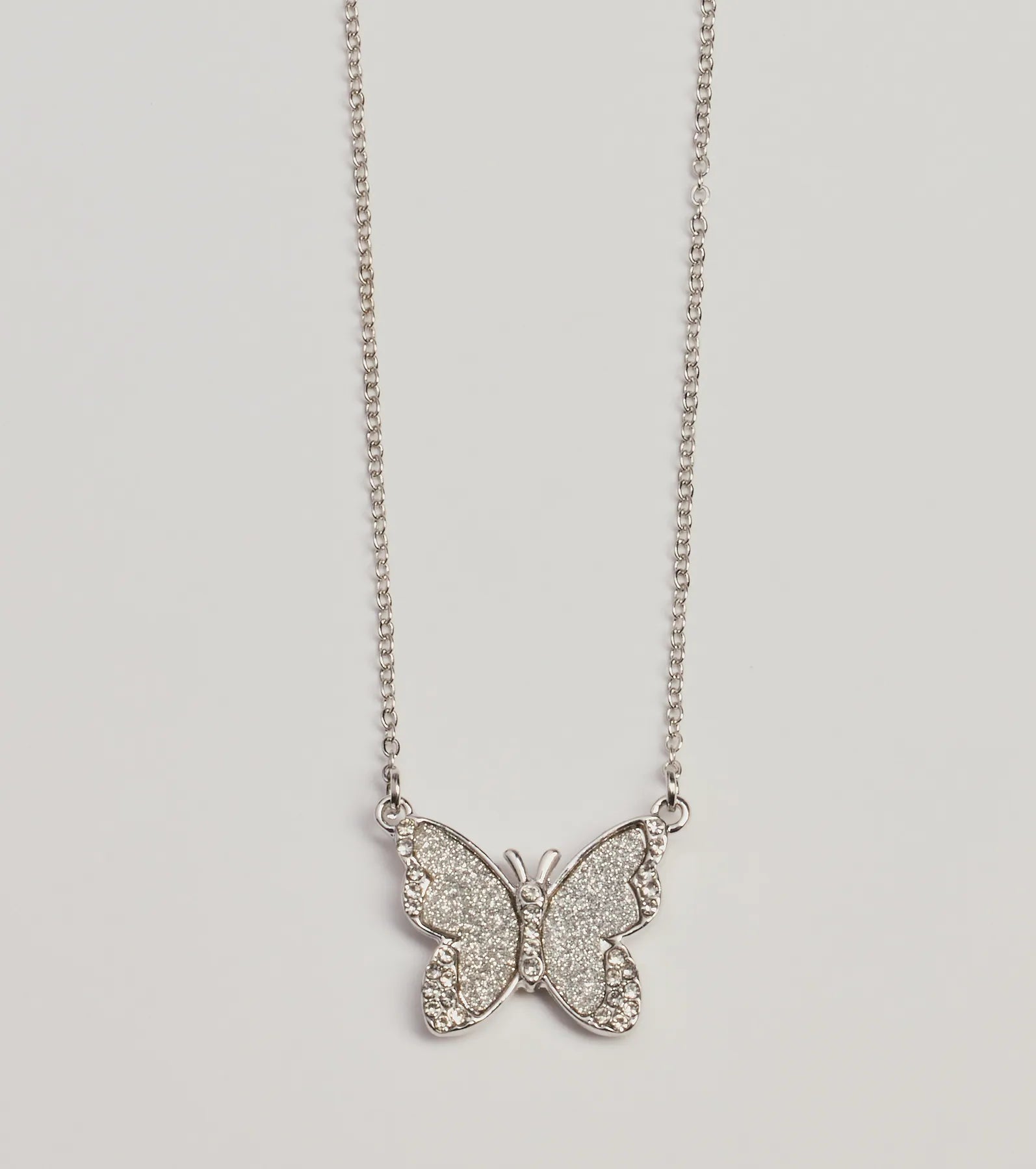 Layer on this glam necklace featuring a large butterfly pendant with rhinestones that give every outfit sparkle. Complete the look with a bracelet.