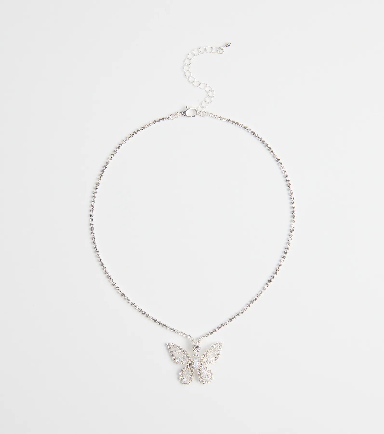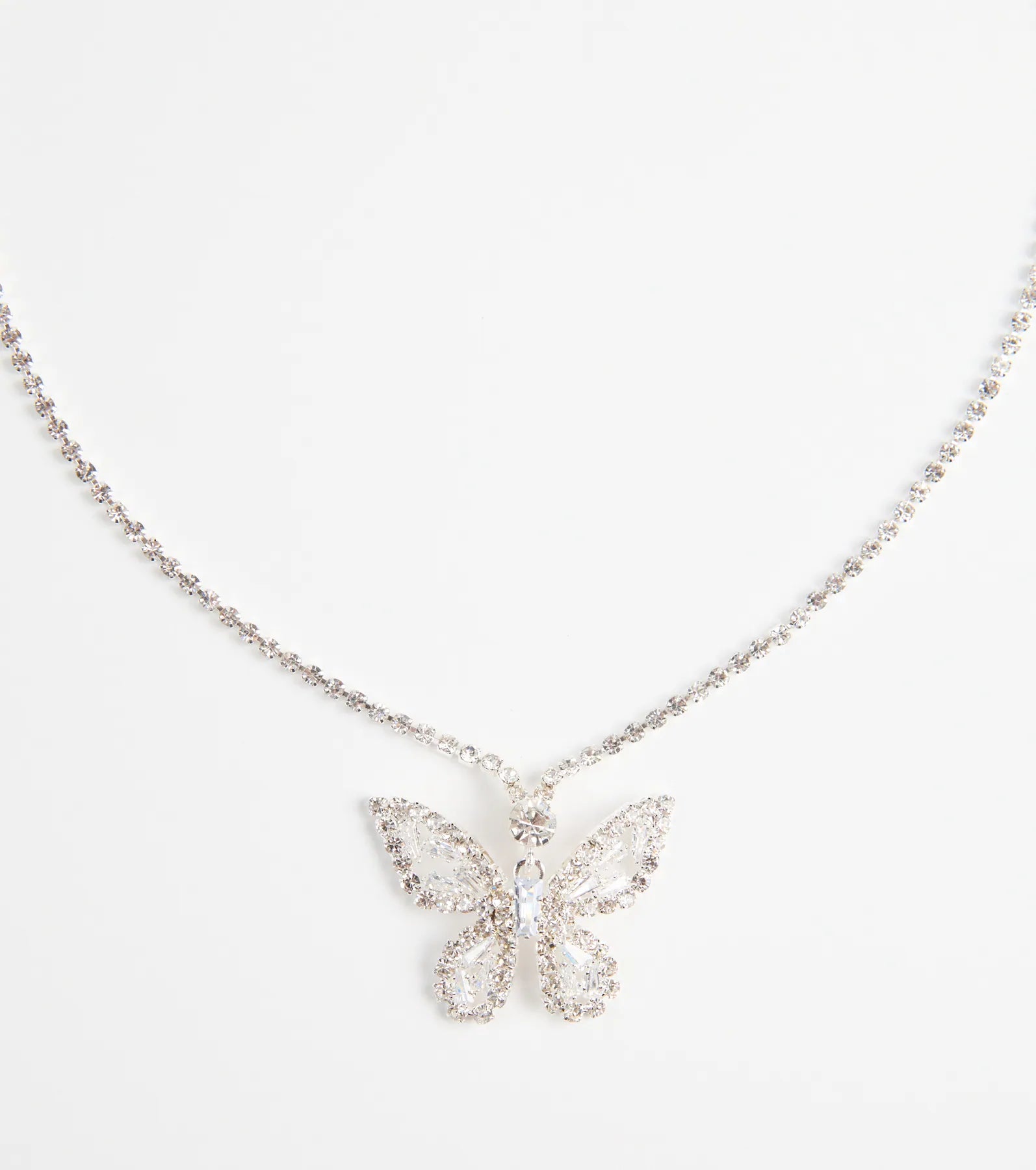 This charming necklace features a delicate butterfly pendant adorned with sparkling cubic zirconia. adding a touch of whimsical radiance to any look.