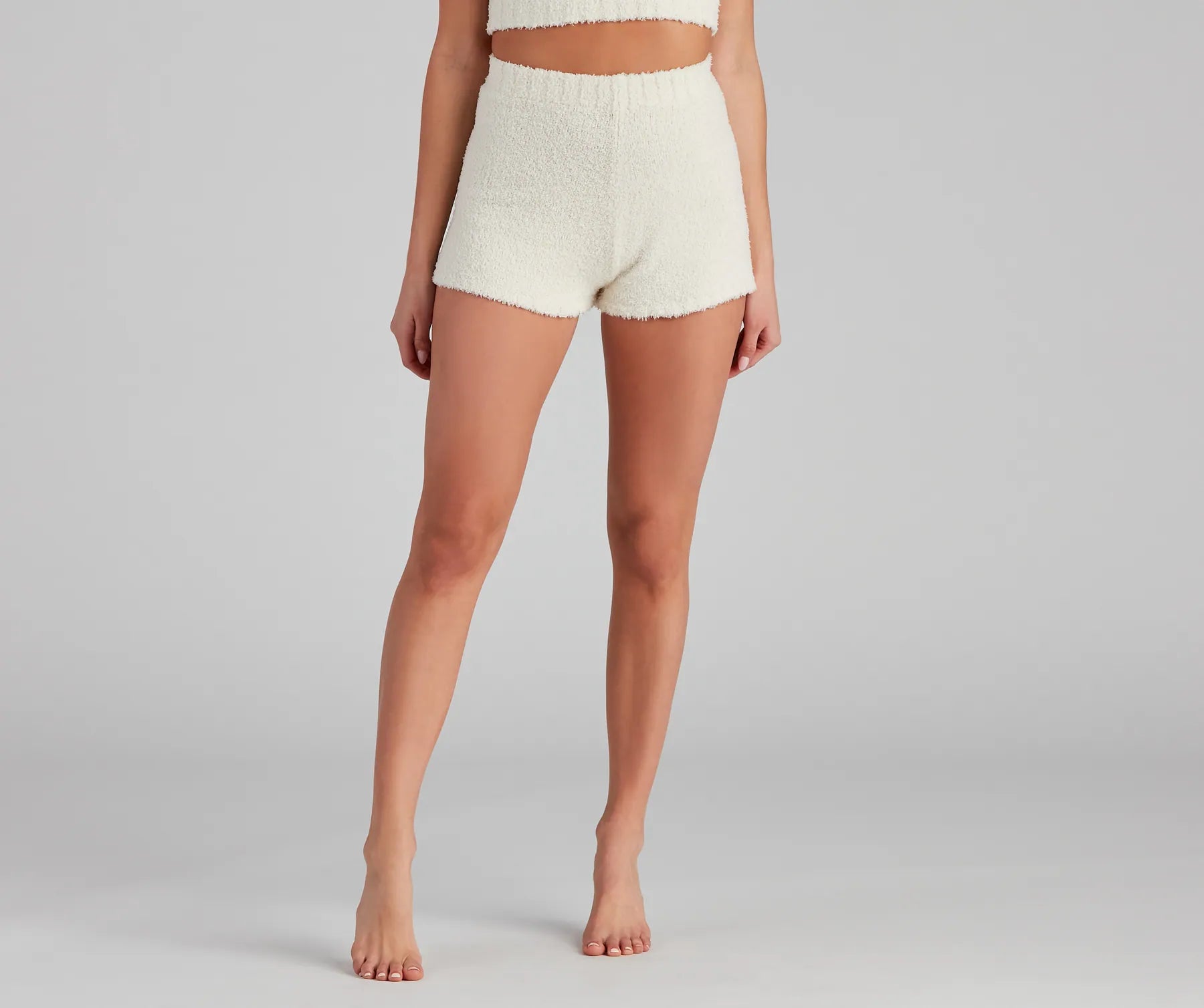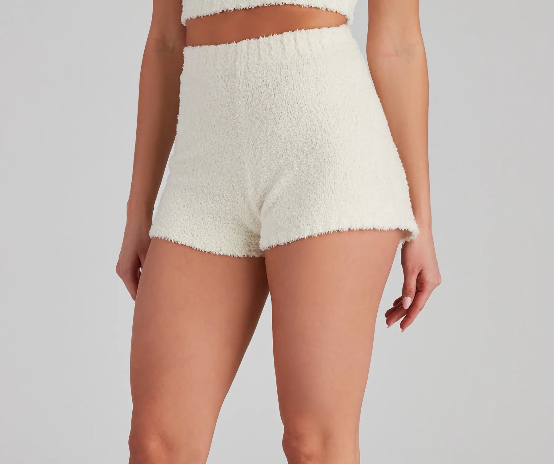 Snuggle up in these adorable and cozy chenille pajama shorts! They feature a high-rise elasticized waist with ribbed detailing. a form-hugging fit. and are composed of a super soft chenille fabric. Pair with the matching pajama tank.