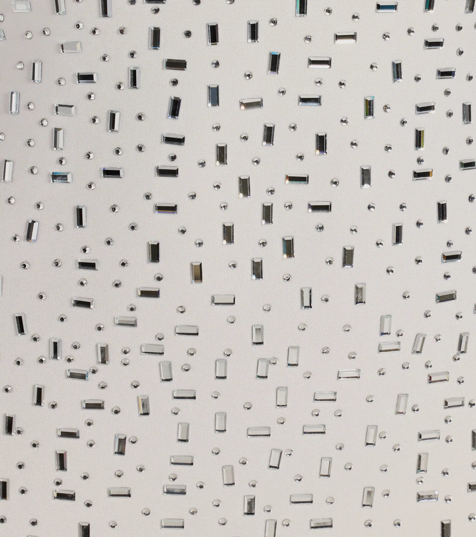 - Rhinestone embellished knit-lined fabric. moderate stretch