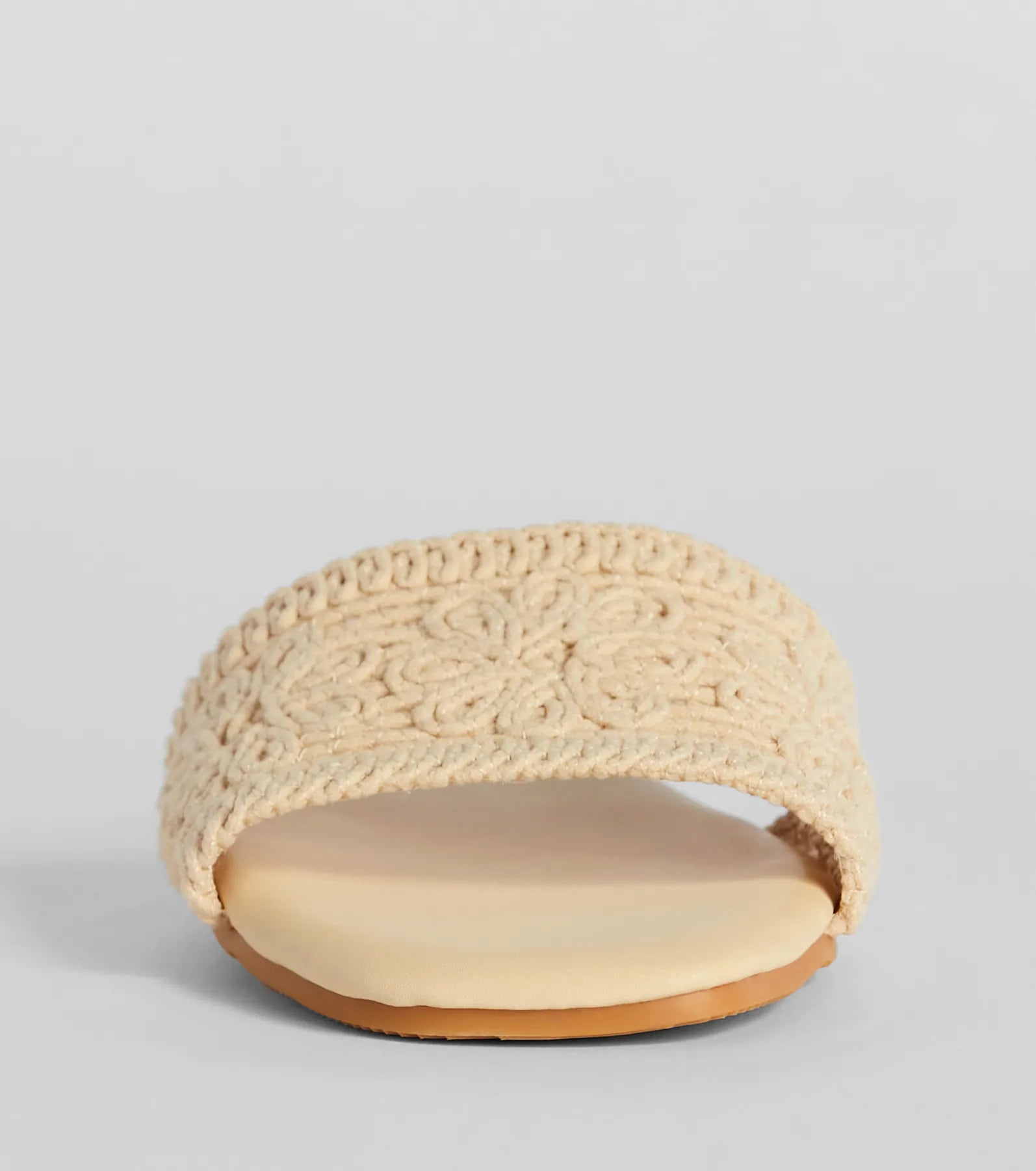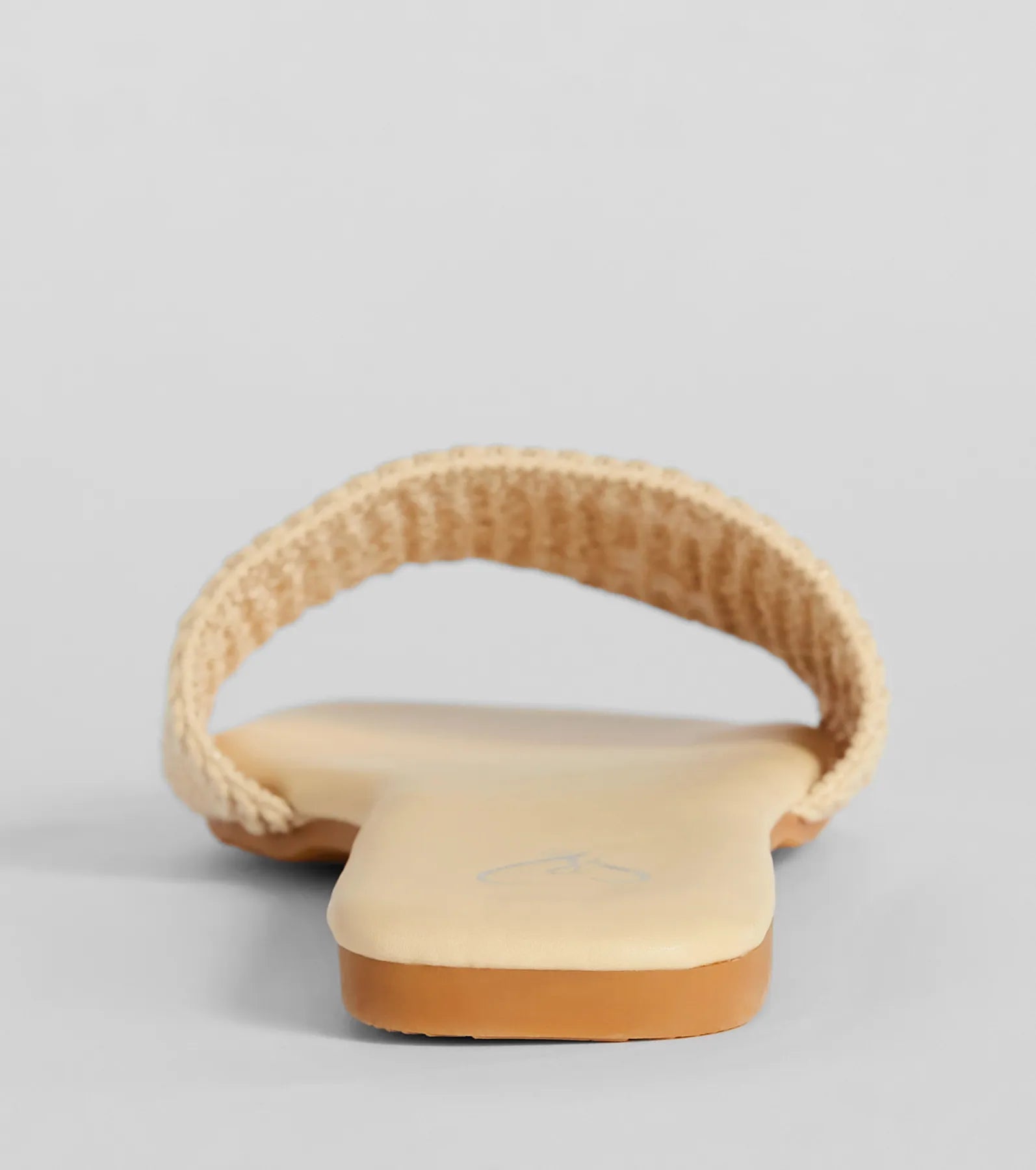 The fun and cute vibes of these sandals will have you living in them all season! They feature a sleek square toe with a floral patterned straw band for a trendy touch and a comfortable flat sole. Complete the look with a cute .