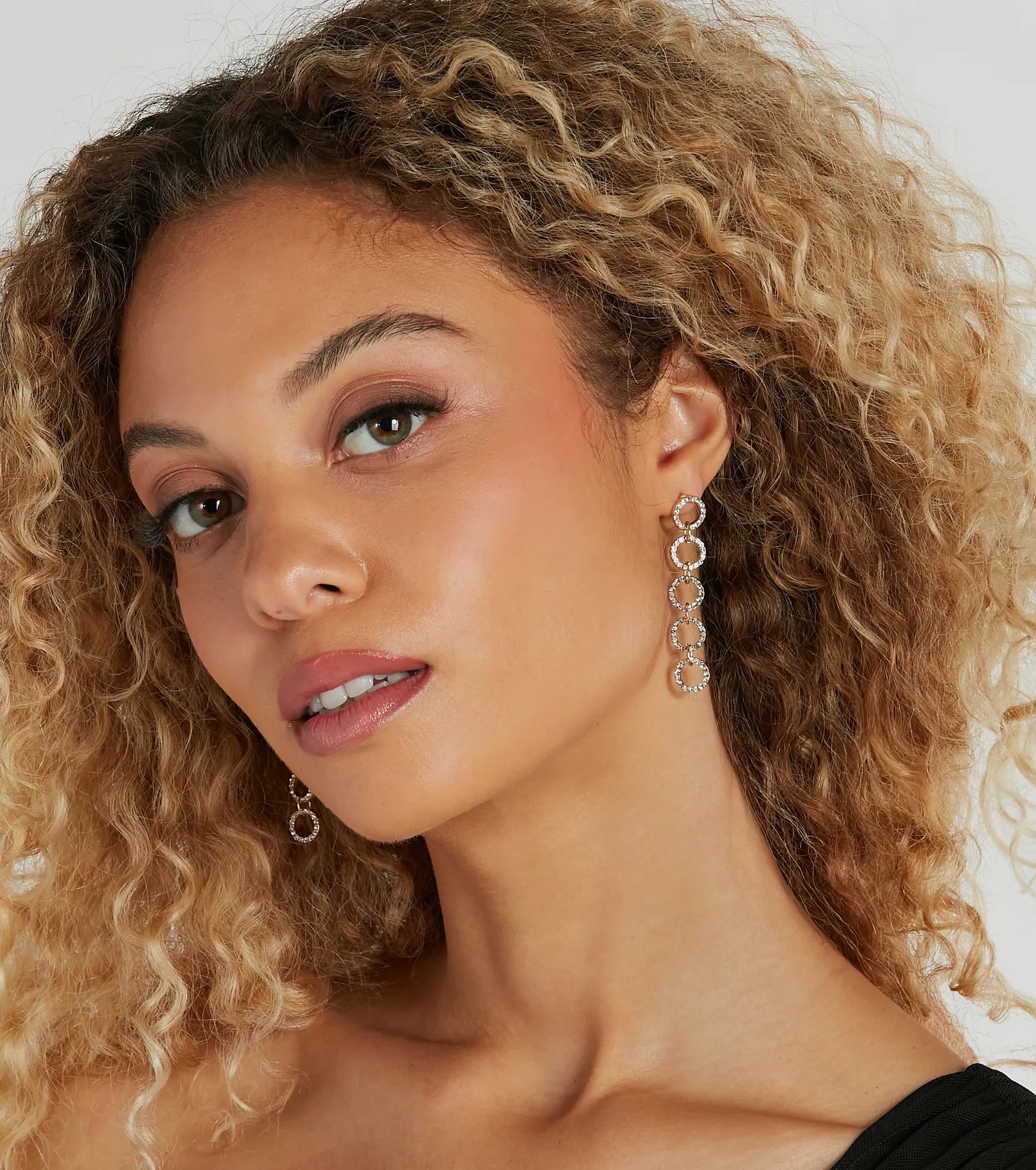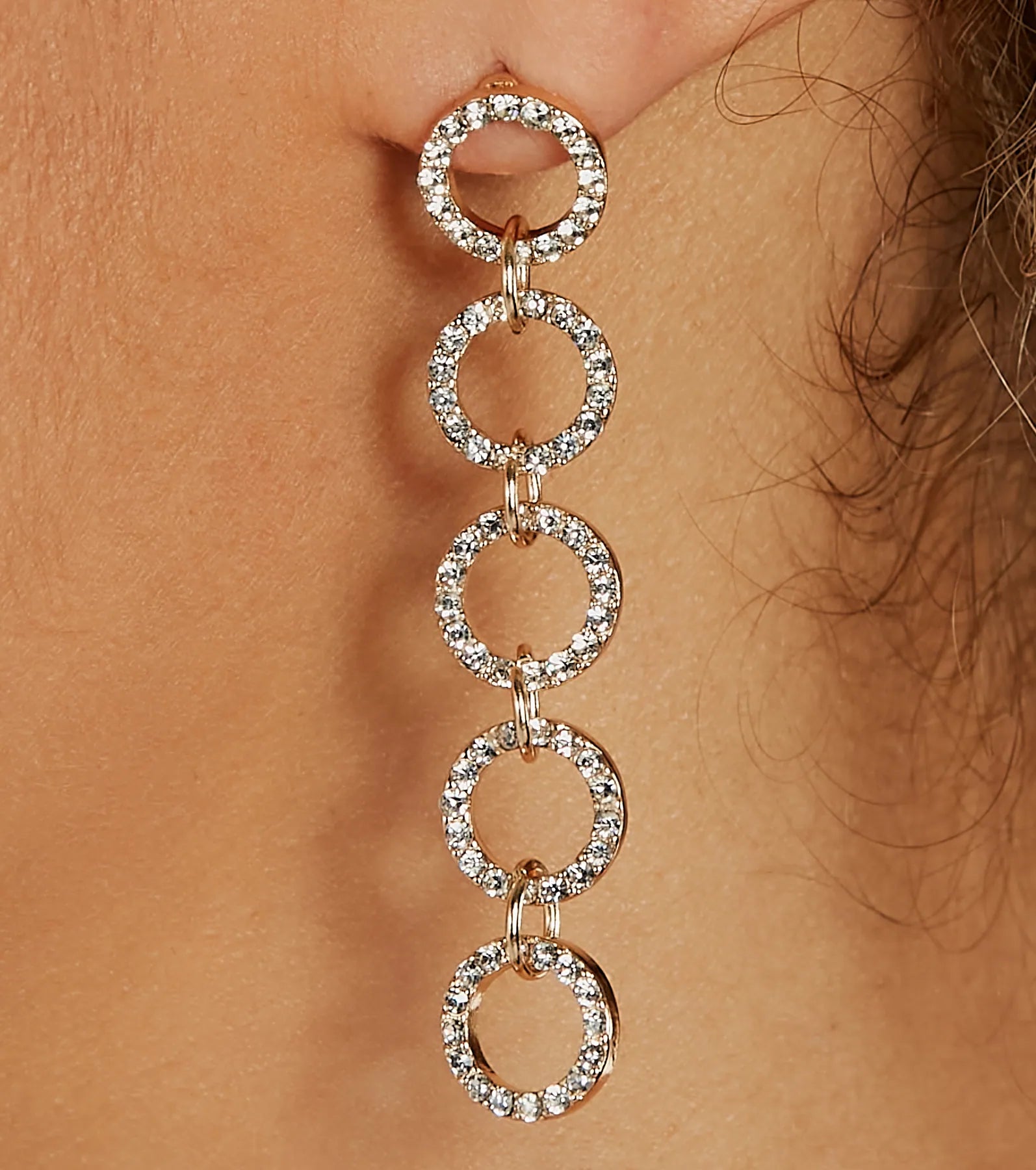 Add a touch of elegance and sophistication in these rhinestone linear earrings to compliment your semi-formal or special occasion dress! Featuring dainty circle charms adorned with sparkling rhinestones. these earrings offer a linear design and a secure post-back closure. Complete the look with gorgeous .