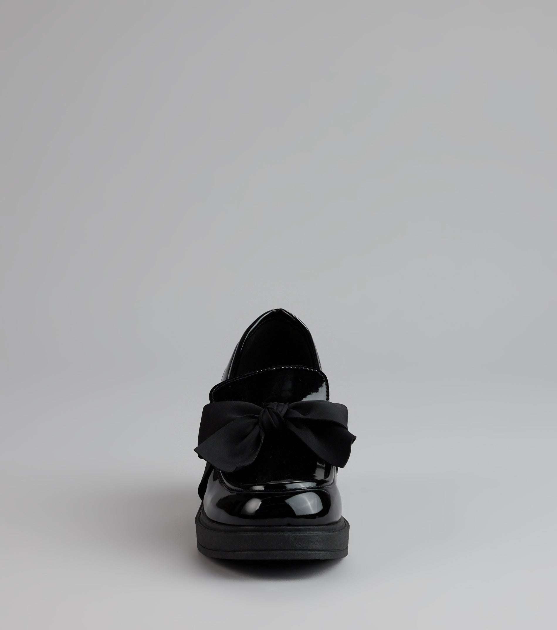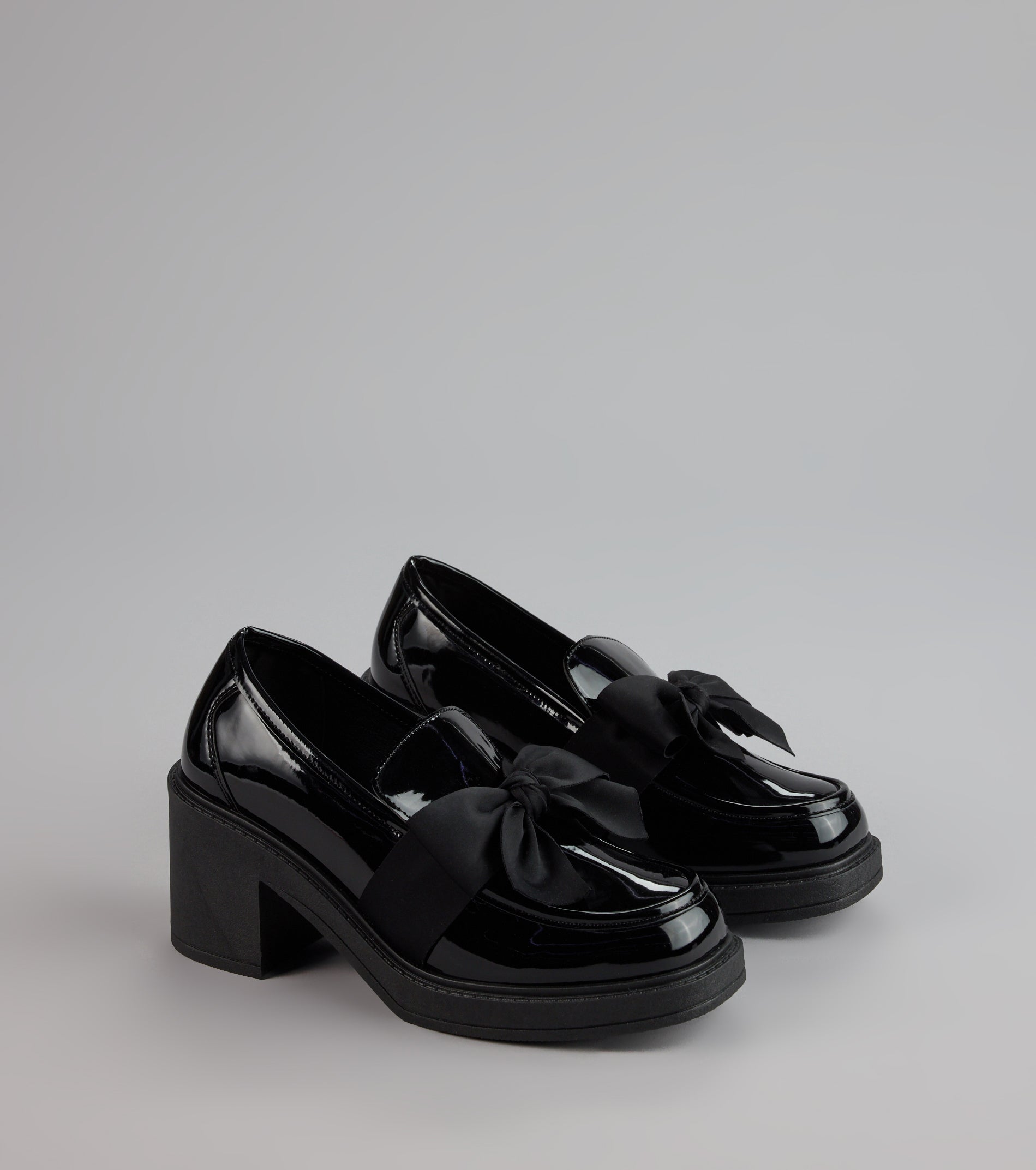 Classic meets playful—these patent loafers get a girly twist with satin bows and chunky block heels that keep them modern.