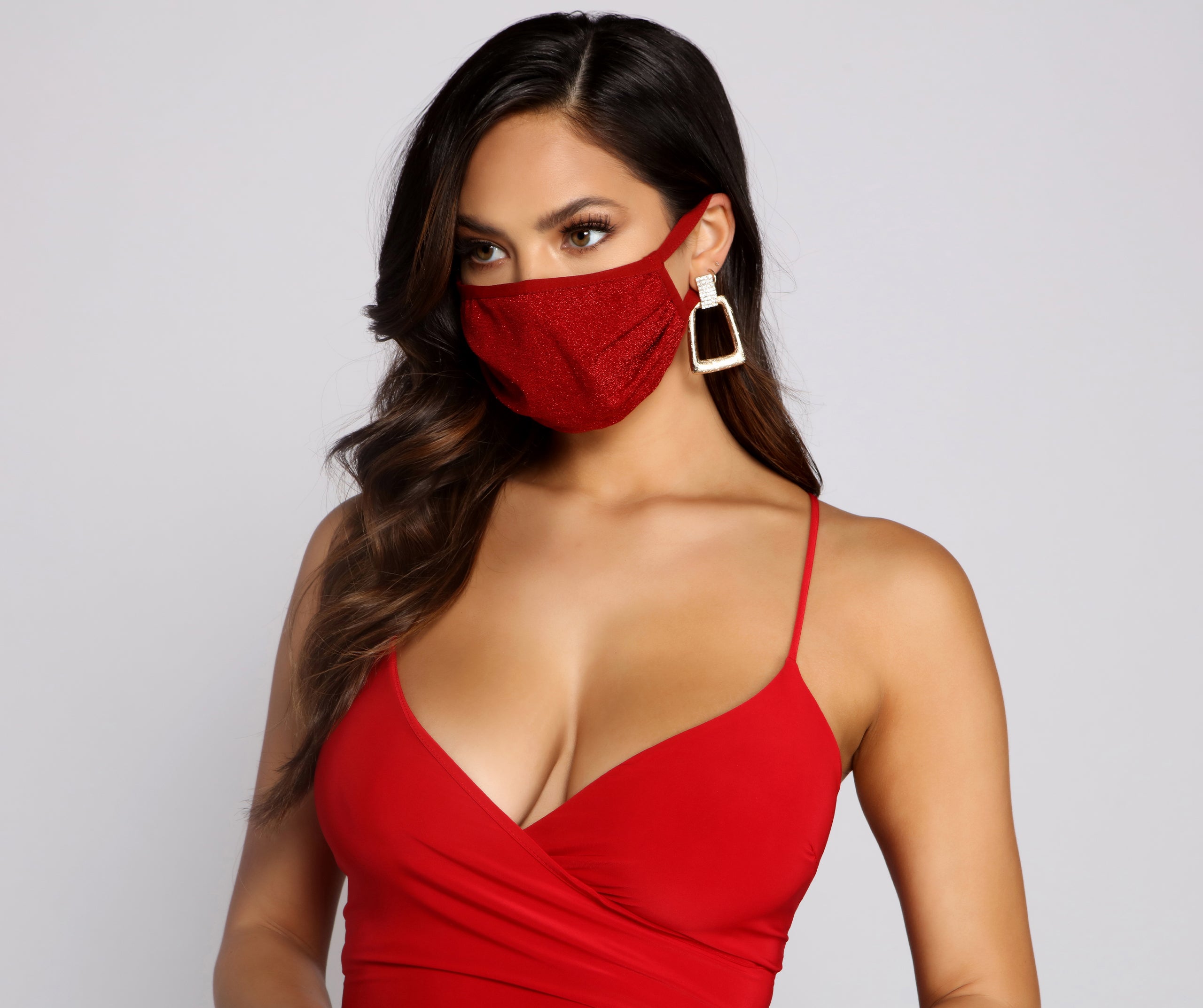 This glitter face mask will keep you safe and let you showcase major glam vibes! It features a woven material with exterior glitter detailing and ear loops. Complete your look with a and heels.