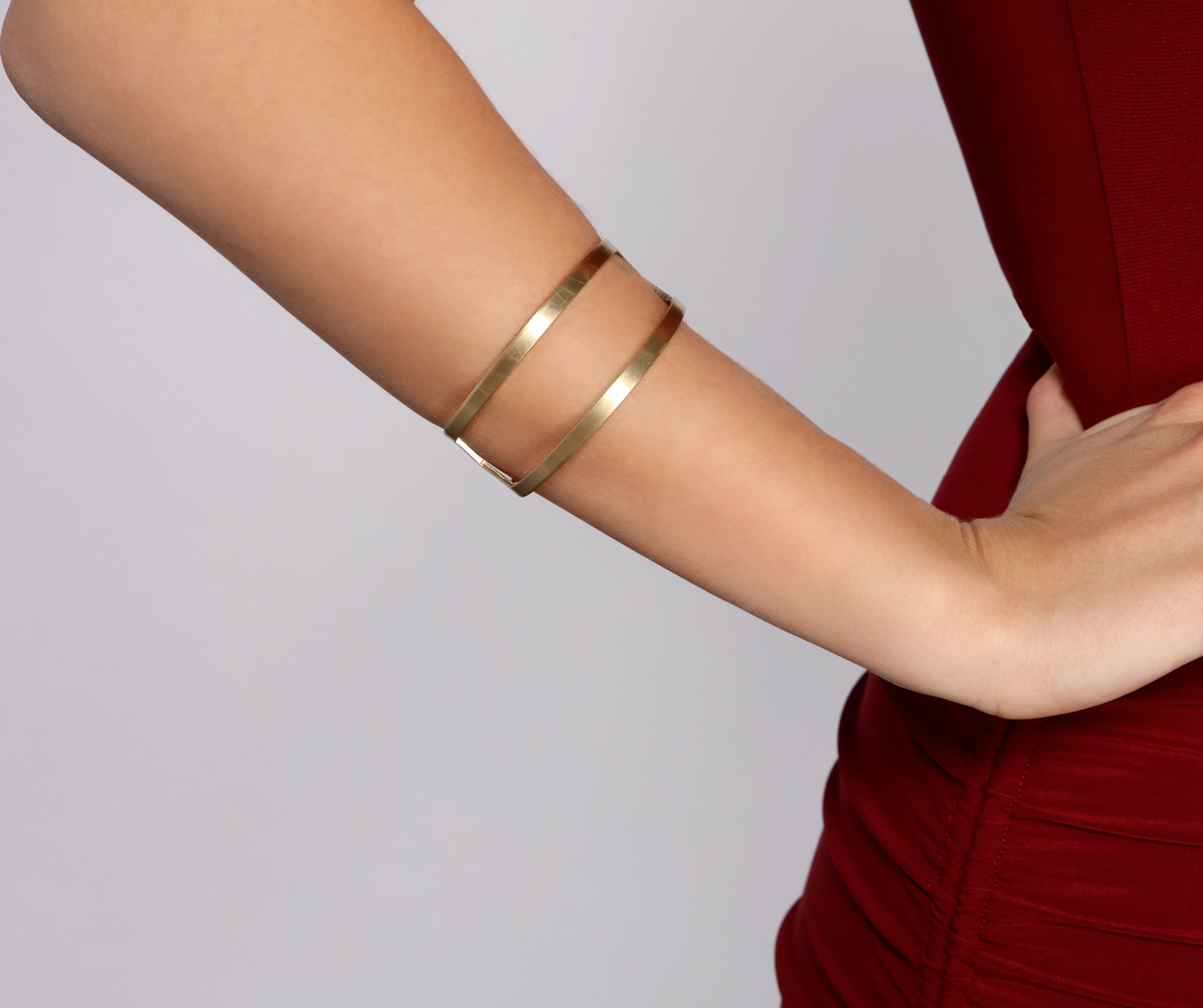 Glow up in a cuff that brings the glamour to your outfit. The cuff features a gold color and a narrow two-row design. Complete your outfit with a and to create a head-turning outfit.
