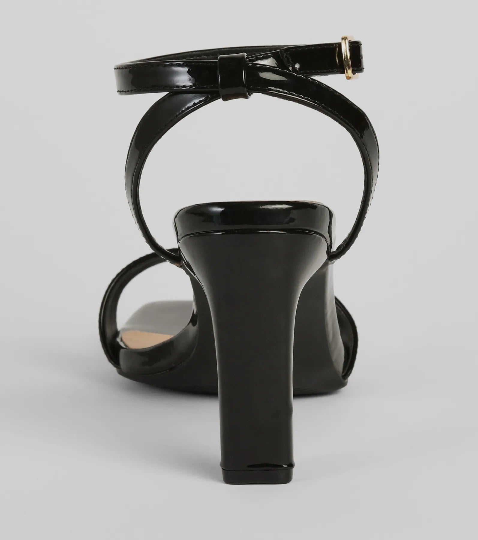 These patent leather block heels are guaranteed to receive many compliments for your good taste! Featuring a square toe with a toe strap. a short thin block heel. and an adjustable ankle strap with buckle closure. Complete the look with a for a dinner out!