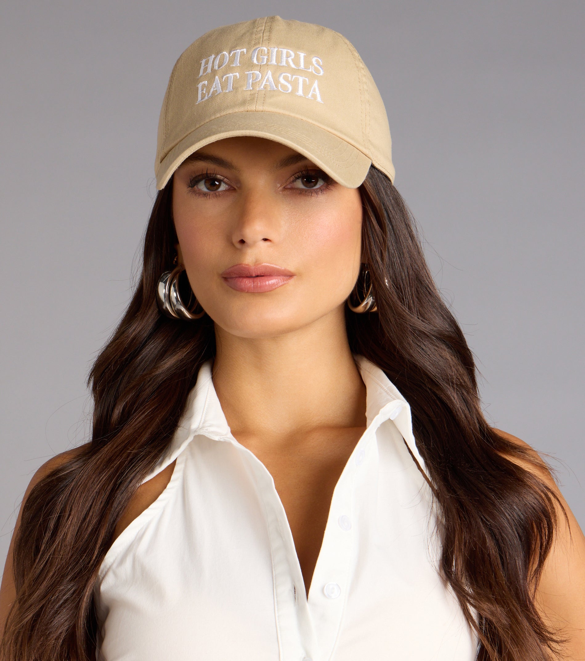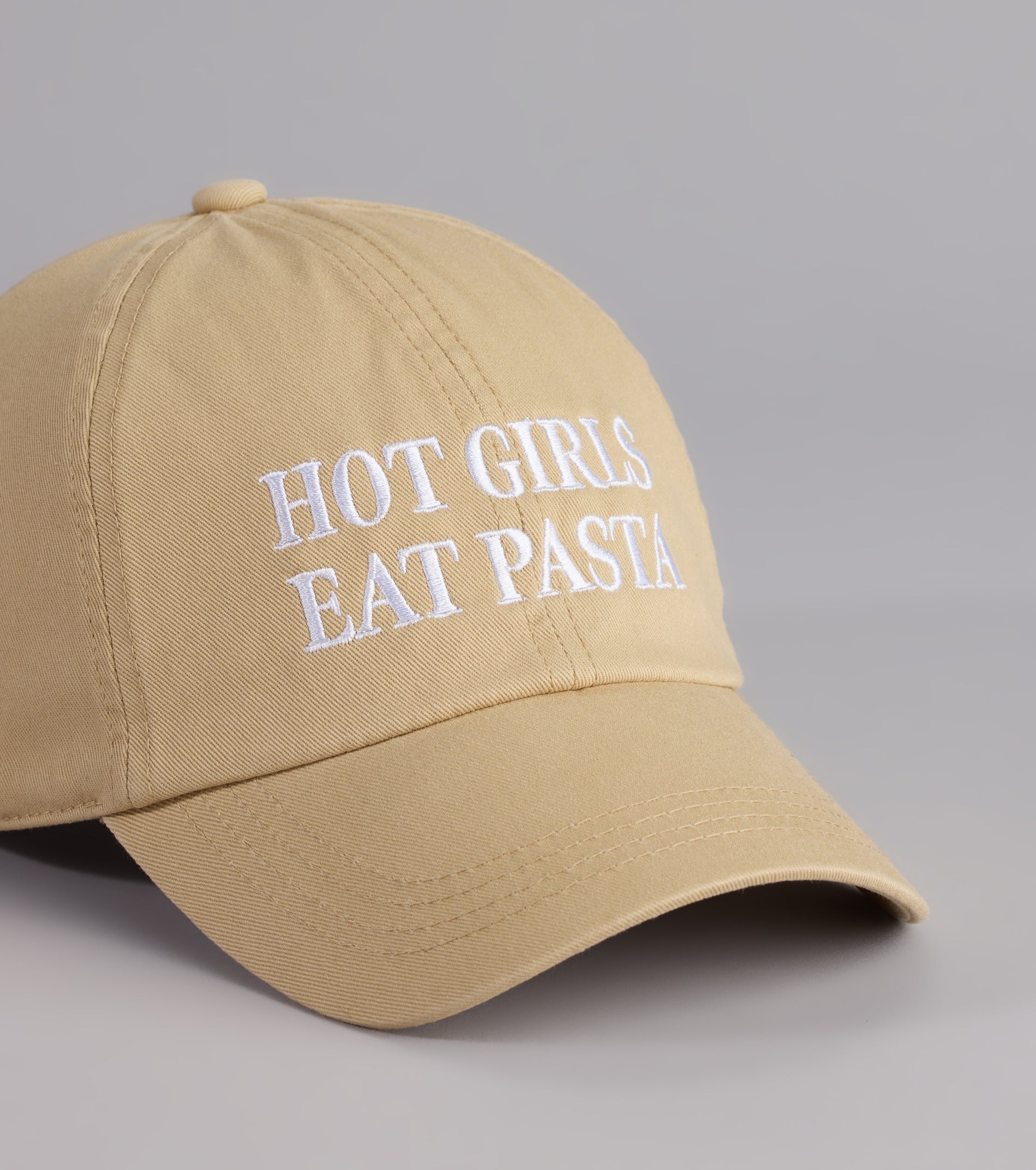- Embroidered text reads. Hot Girls Eat Pasta
