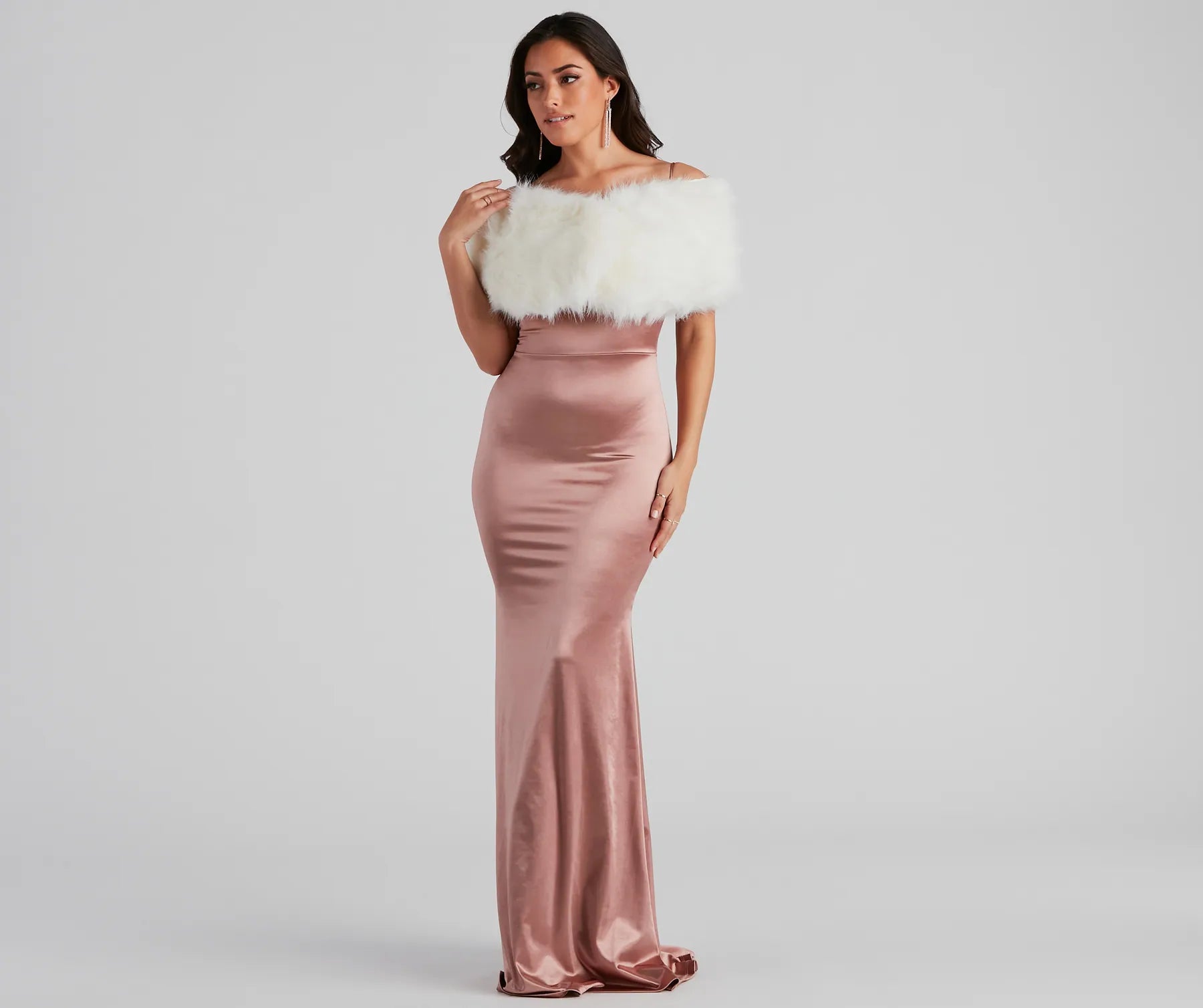 This season. add this glam shawl that brings luxe to your outfit. It features a long design with a hook-eye closure for an optional closed look. The shawl is composed of a faux fur and is lined with a satin-like material. Complete your look with a curve-hugging and a sleek clutch.