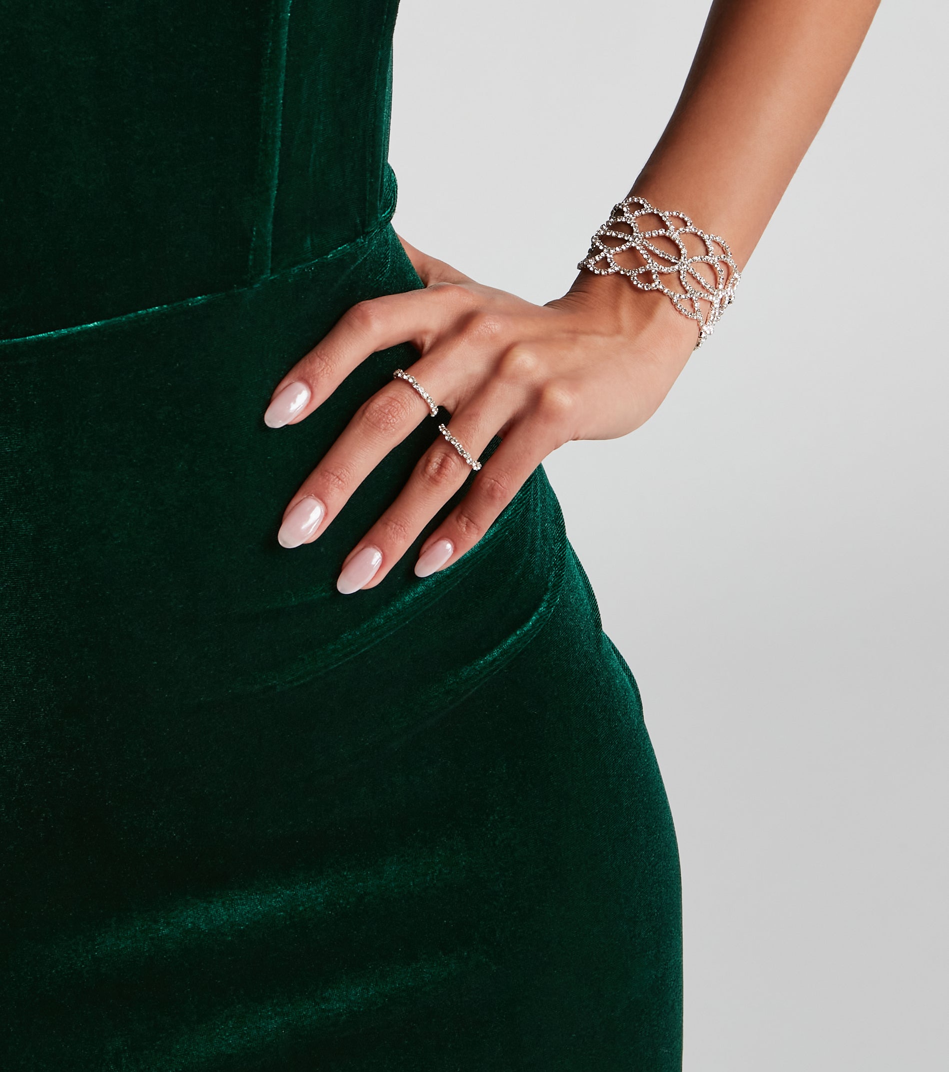 This work-of-art rhinestone bracelet creates an intricate and glam style for your dressy outfit! It features an eye-catching design with a clasp metal closure for a secure fit. Complete the look with a sparkly